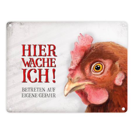 Huhn mit Eiern Metallschild in 15x20 cm mit Spruch Hier wache ich! Betreten auf eigene Gefahr