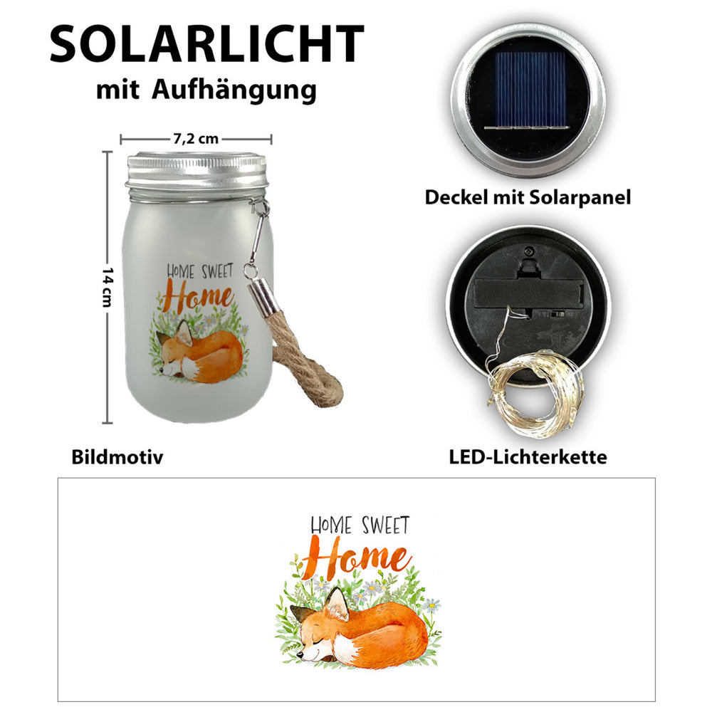 Fuchs im Aquarell-Stil Solarlicht mit Spruch Home Sweet Home