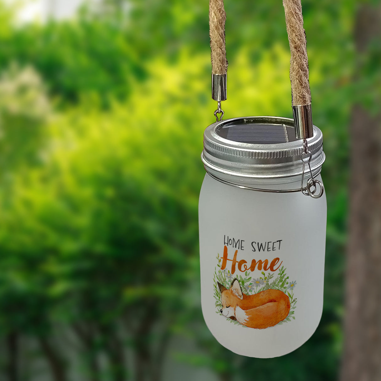 - Ein niedlicher Fuchs, der friedlich schlummert, ziert dieses entzückende Solarlicht. Mit seinem Einmachglas-Design und dem nostalgischen Strickhenkel verleiht es jedem Raum einen Hauch von Natur und Waldromantik. Perfekt für alle, die eine gemütliche Atmosphäre schätzen und ein bisschen Waldzauber in ihr Zuhause bringen möchten.
