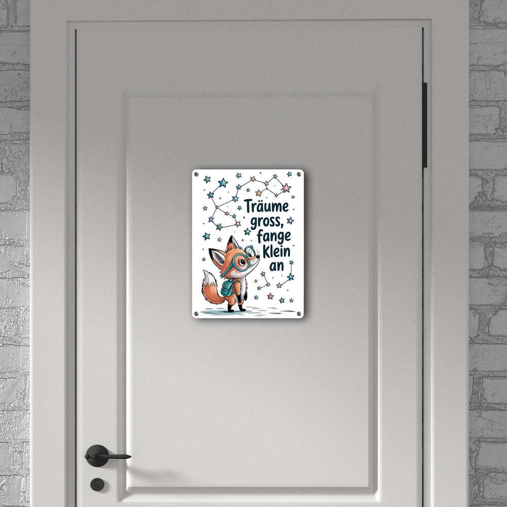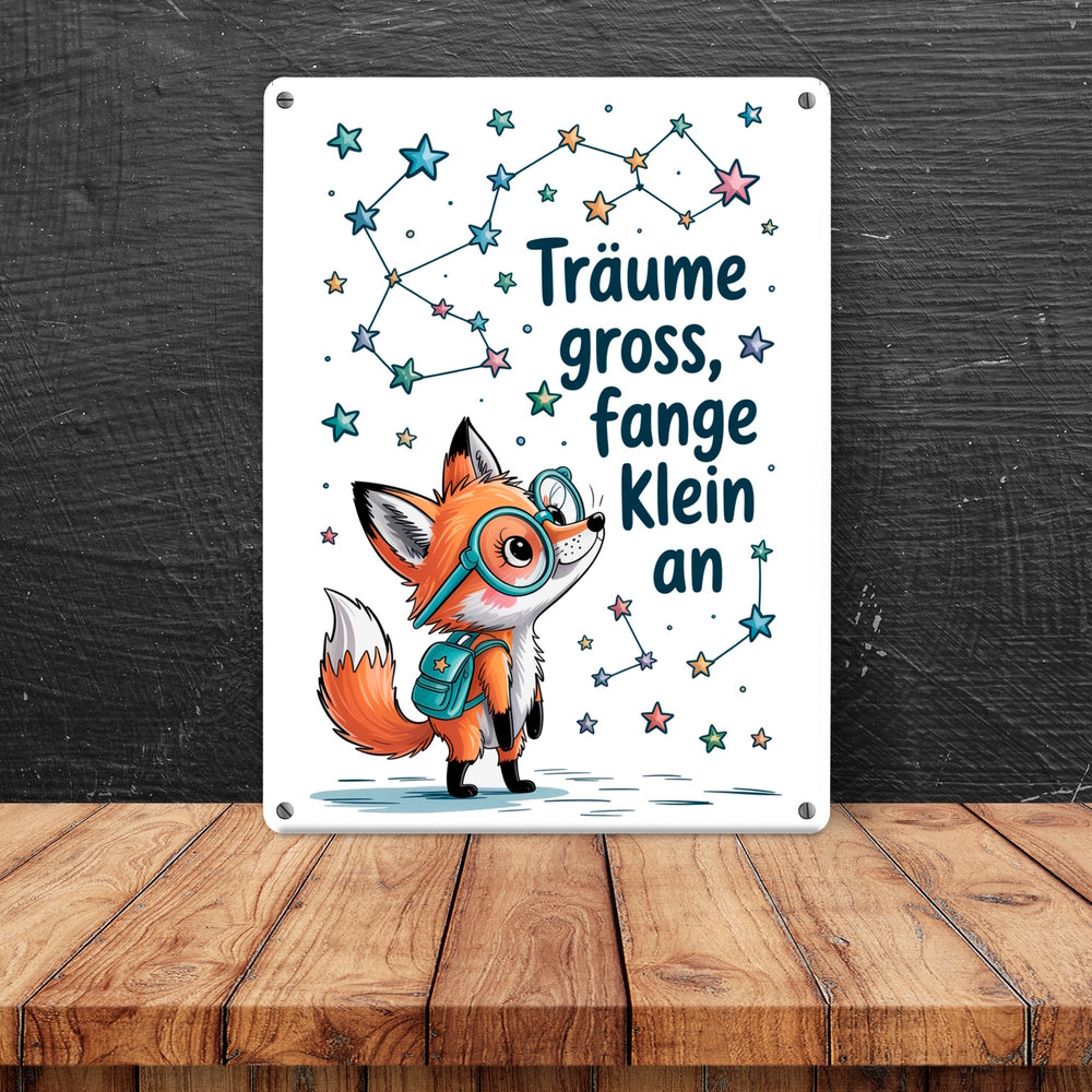 - 1x Fuchs mit Rucksack - Träume gross Metallschild in 15x20 cm in der gewählten Größe