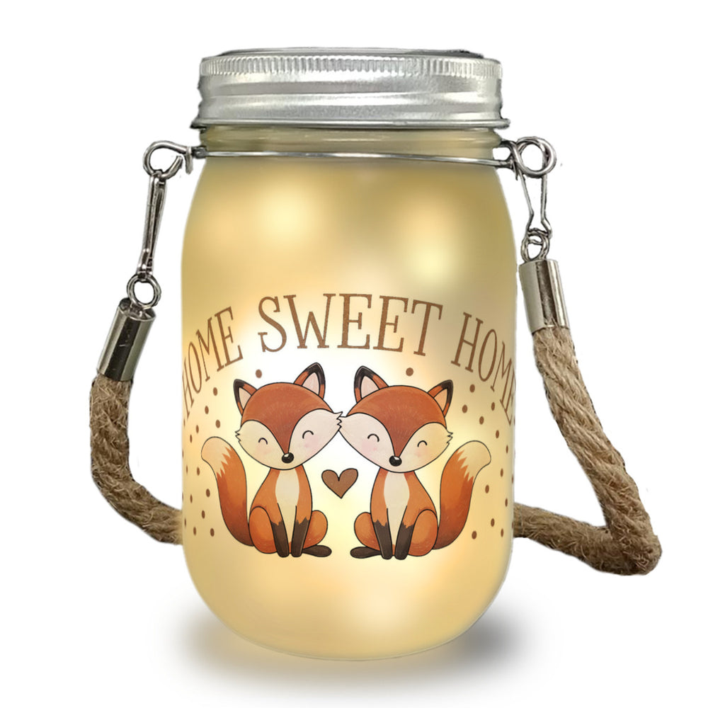 zwei Füchse mit Herz Home sweet Home Solarlicht