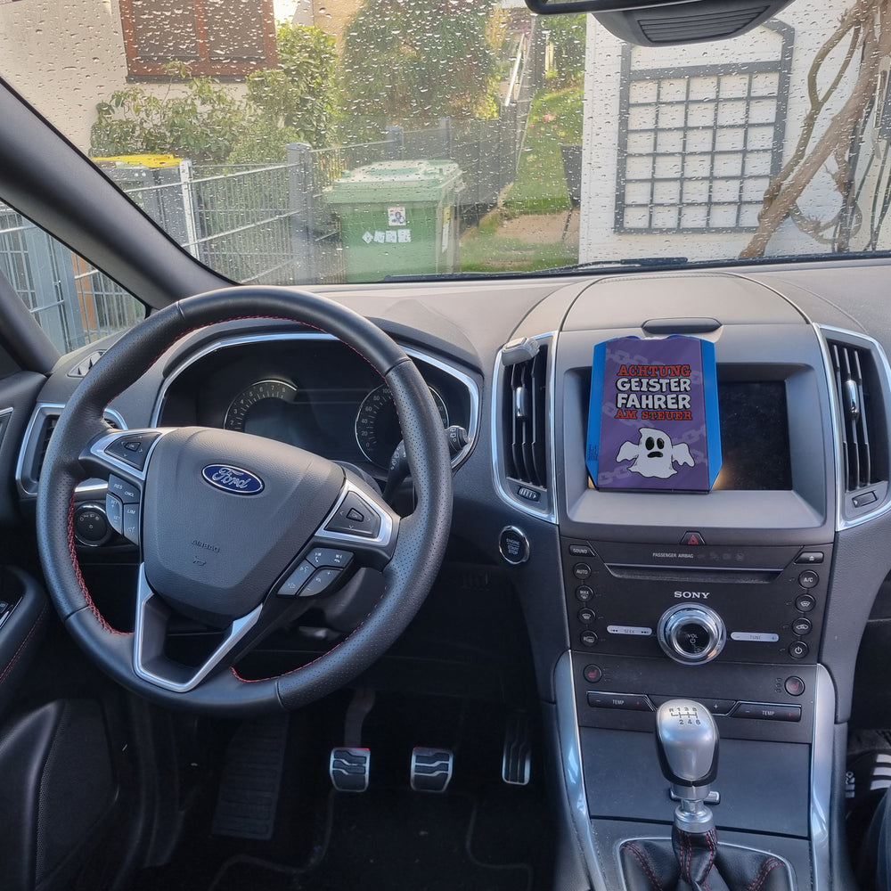 Geist Parkscheibe mit Spruch Geisterfahrer am Steuer