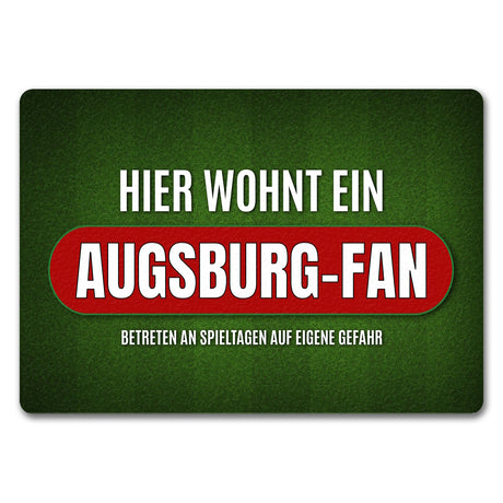 Hier wohnt ein Augsburg-Fan Metallschild mit Rasen Motiv