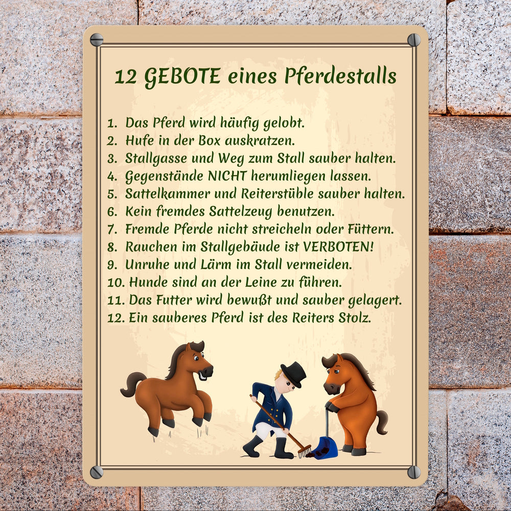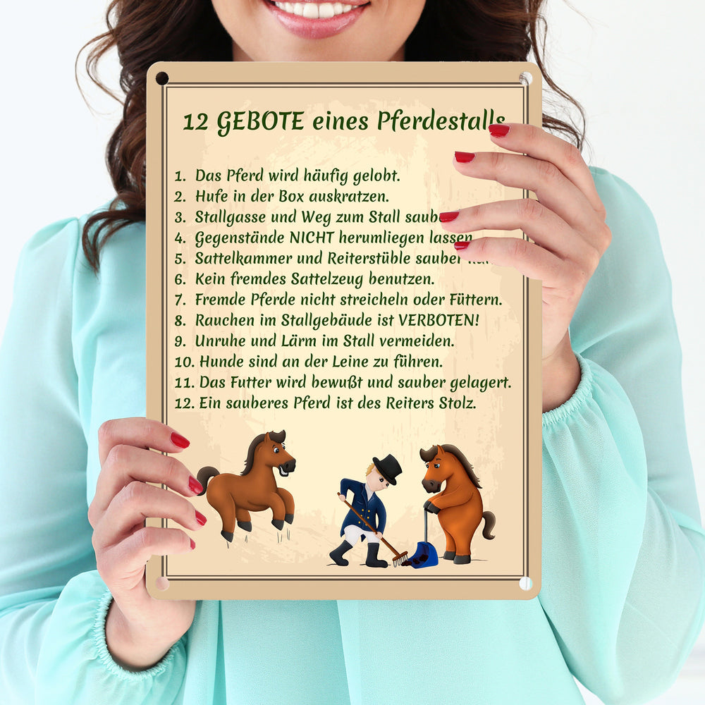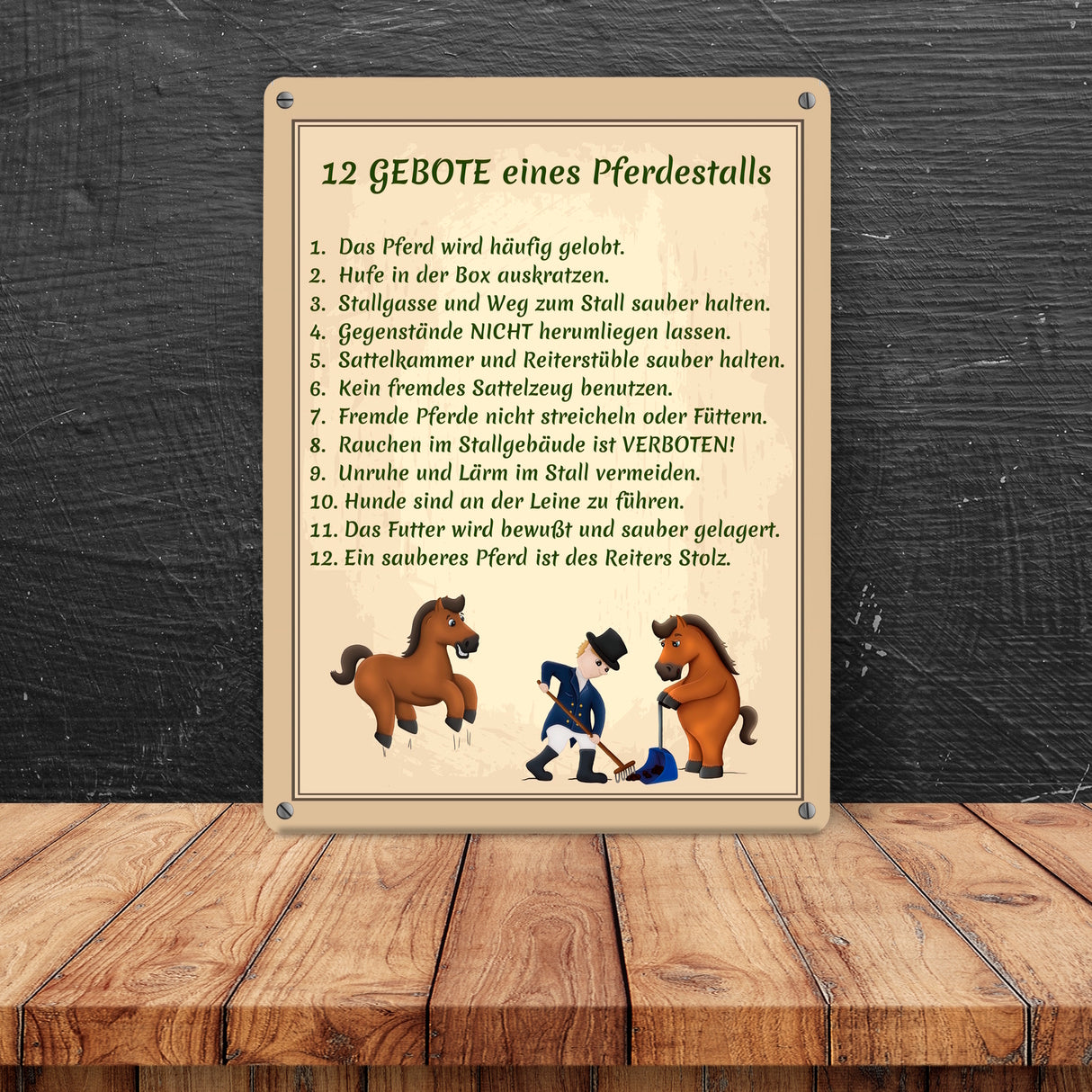 - 1x 12 Gebote eines Pferdestalls Metallschild in 15x20 cm in der gewählten Größe