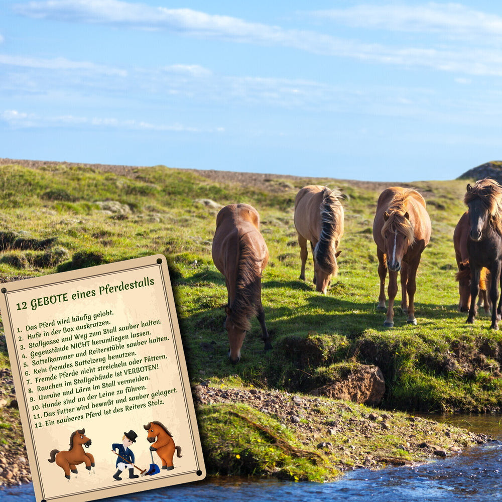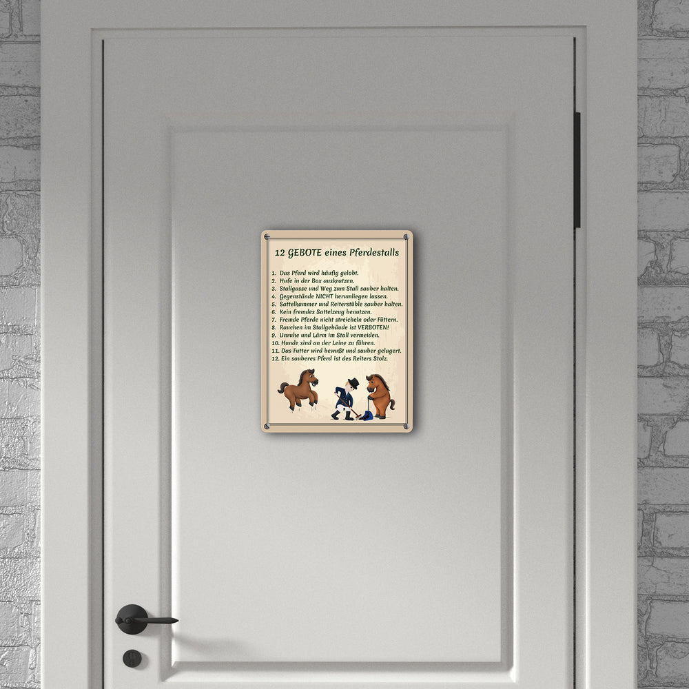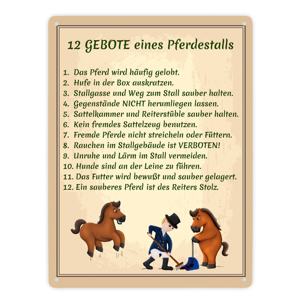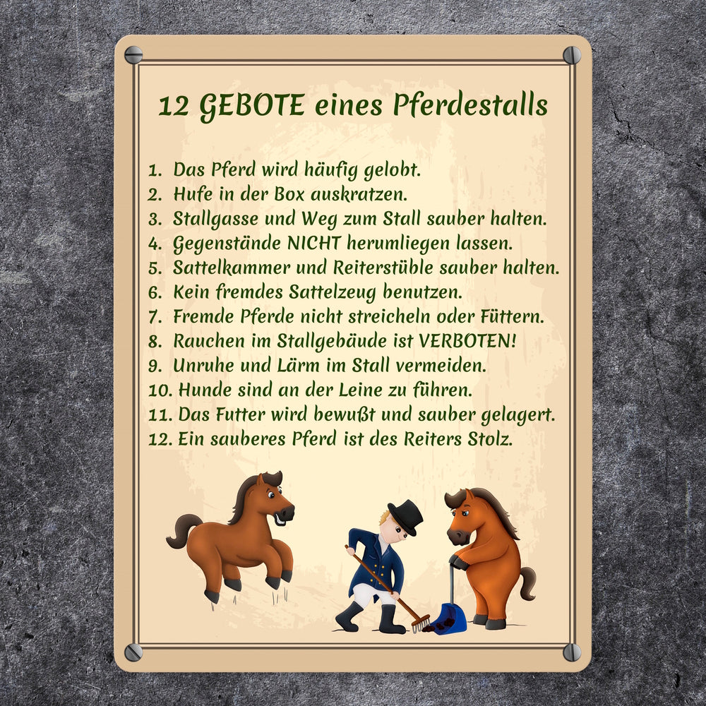 - 1x 12 Gebote eines Pferdestalls Metallschild in 15x20 cm in der gewählten Größe