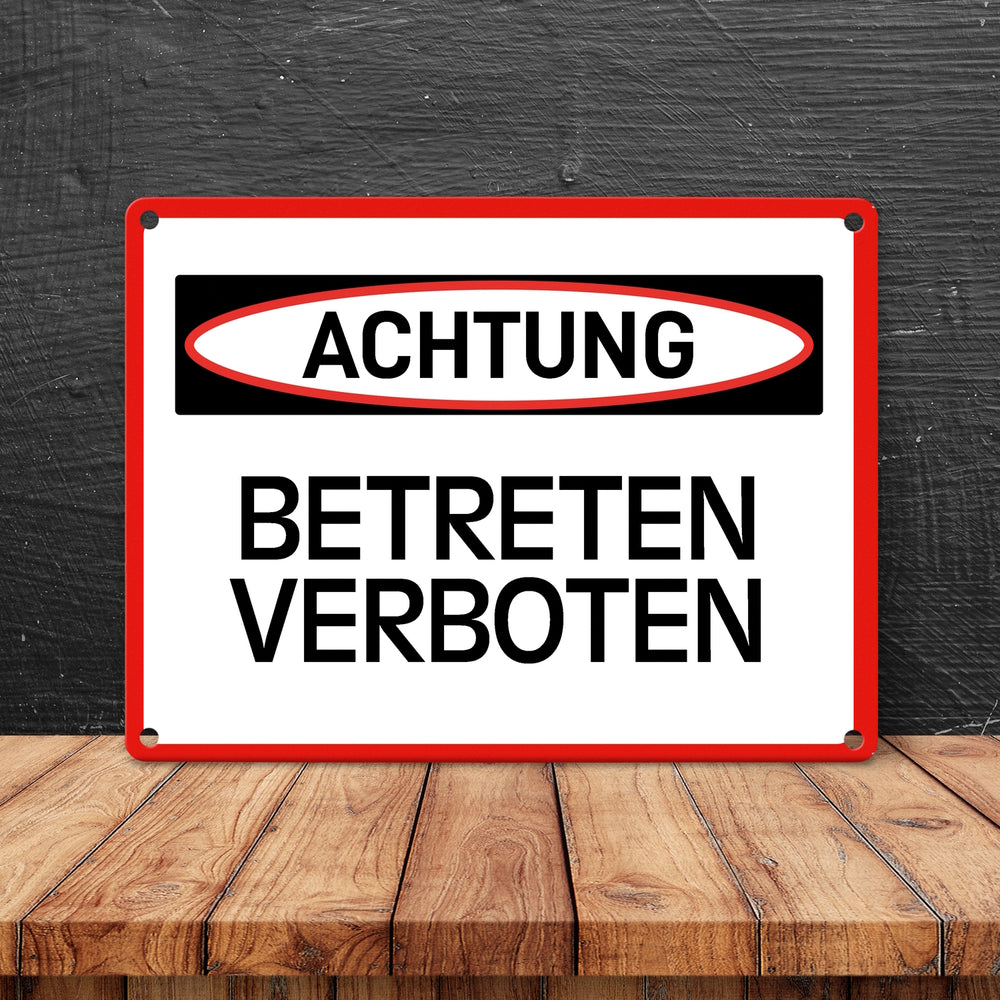 - Lieferumfang: 1x Betreten verboten Warn- und Hinweisschild im modernen Design