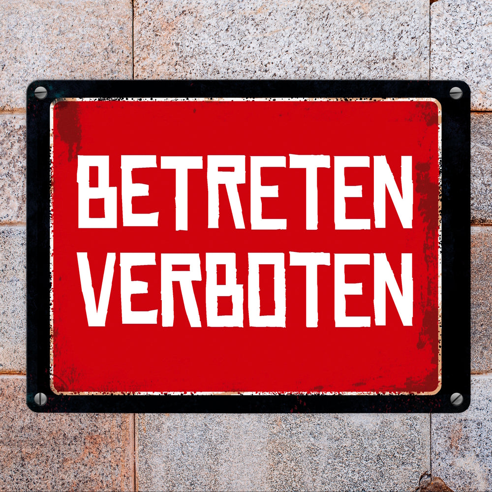 - Lieferumfang: 1x Betreten verboten Warn- und Hinweisschild im Used-Look