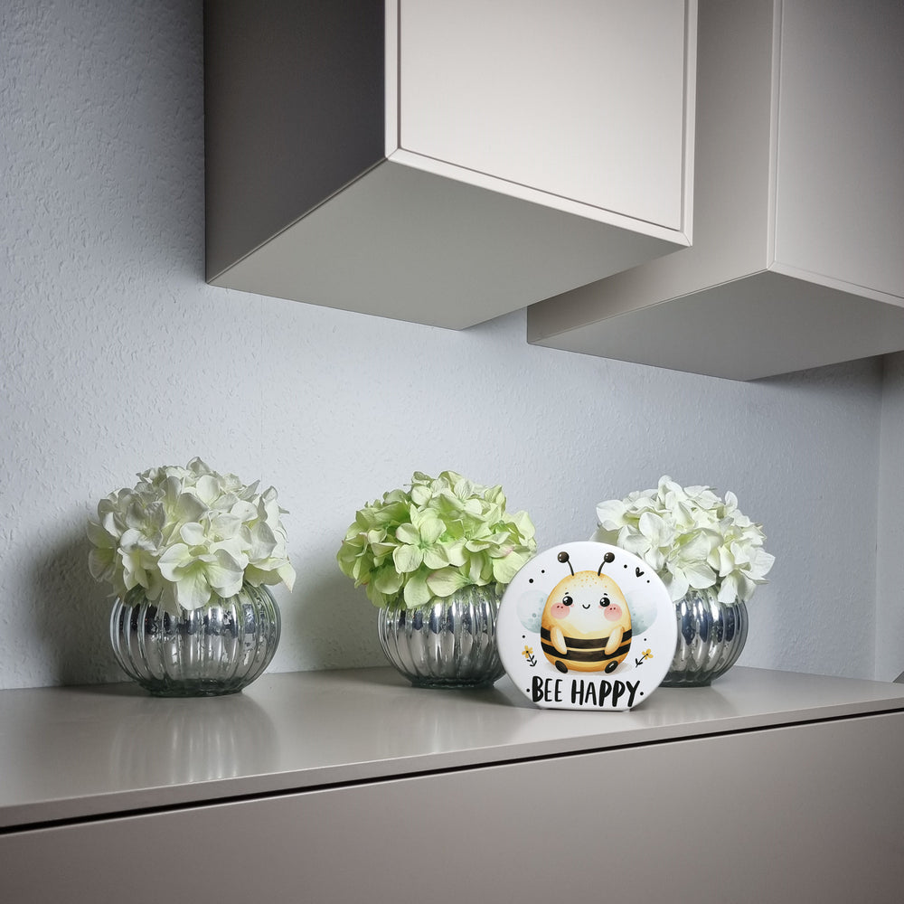 Pummel Biene Magnet rund rund mit Spruch Bee happy
