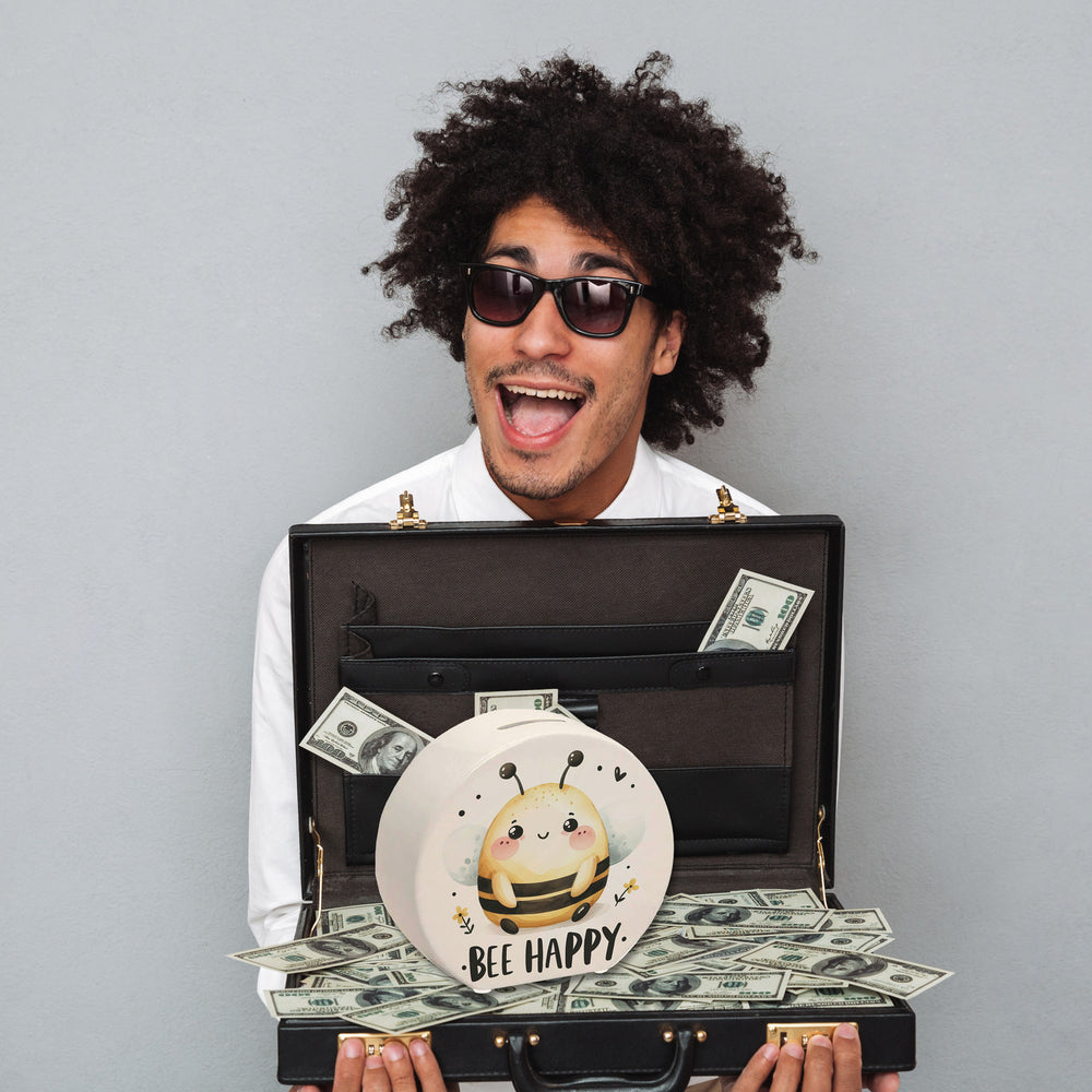 - Lust auf eine süße und flauschige Sparidee? Unsere Biene Bee Happy Spardose ist genau das Richtige! Mit ihrem freundlichen Lächeln und dicken, niedlichen Körper spart sie mit Freude Ihr Geld. Ein Cartoon-Traum für alle, die gerne glücklich sparen möchten!