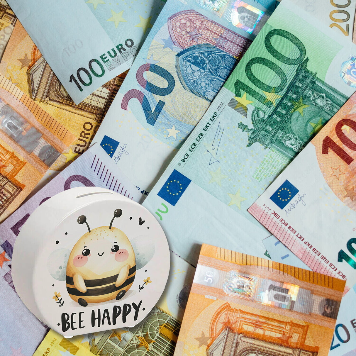 - Ob als Geschenk oder für den eigenen Sparspaß – unsere "Bee Happy" Spardose sorgt für Freude und volle Geldbeutel. Sparen war noch nie so niedlich! Lassen Sie sich von dieser kleinen, dicken Biene zum Lächeln bringen und füllen Sie Ihre Ersparnisse mit Glück.
