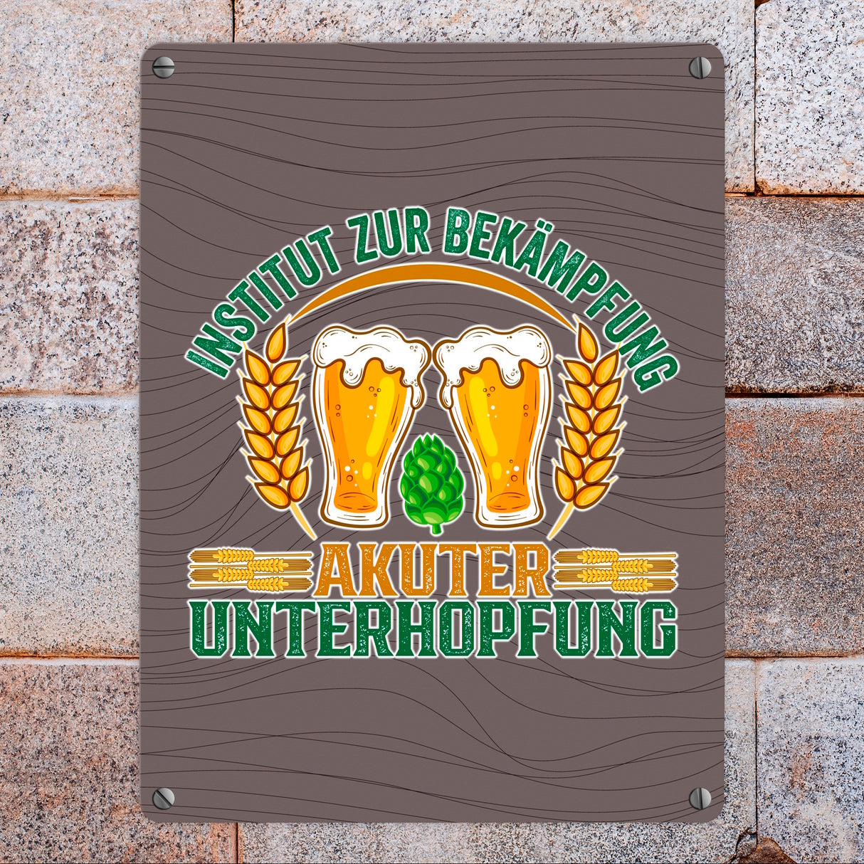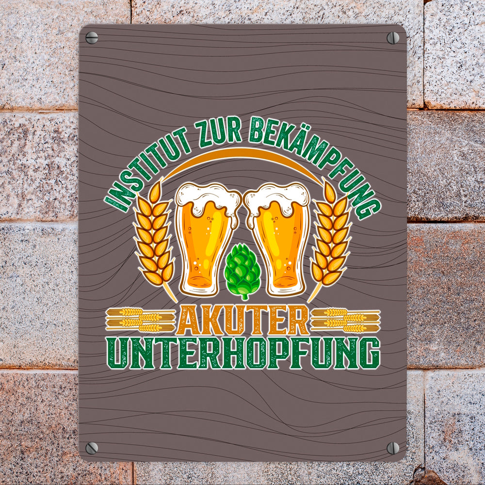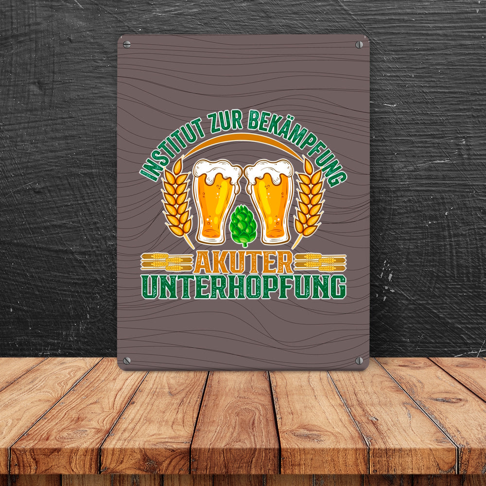 - Kaufen Sie jetzt das Bier Metallschild mit Spruch "Institut zur Bekämpfung akuter Unterhopfung" und überraschen Ihren Mann mit einem witzigen Geschenk zum Geburtstag!
