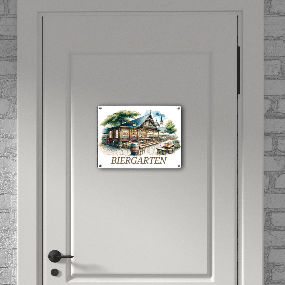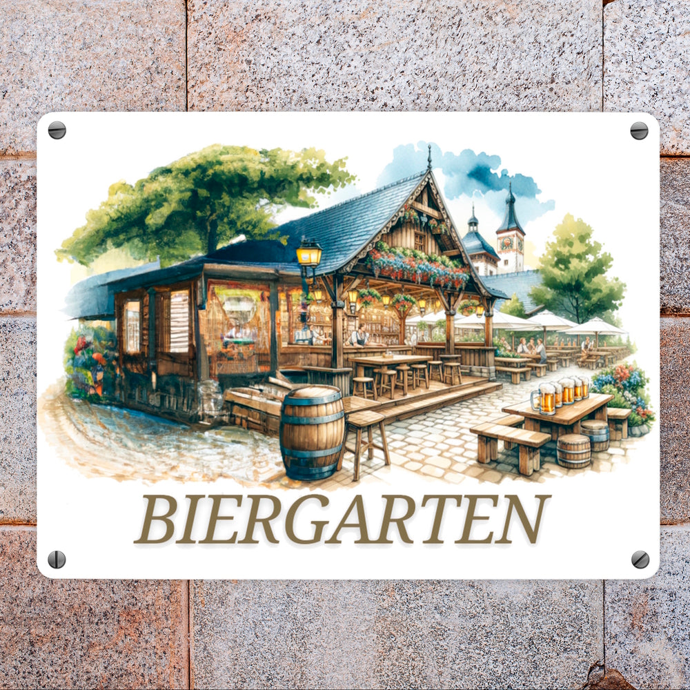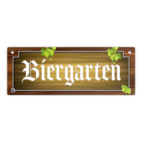 - Ploppt das Bierchen, lacht das Herz! Unser Biergarten Metallschild mit dem Spruch "Biergarten" ist der Gag für jeden Gerstensaft-Liebhaber. Mit rustikalem Haus und Bierseeligkeit im Garten, bringt's das Wohlgefühl direkt an deine Wand. Bäume, Tische und frohsinnige Biergenießer inklusive!