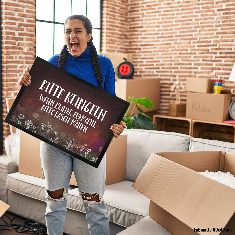 - 1x Bitte klingeln - wenn keiner aufmacht, bitte Rasen mähen Fußmatte in der gewählten Größe