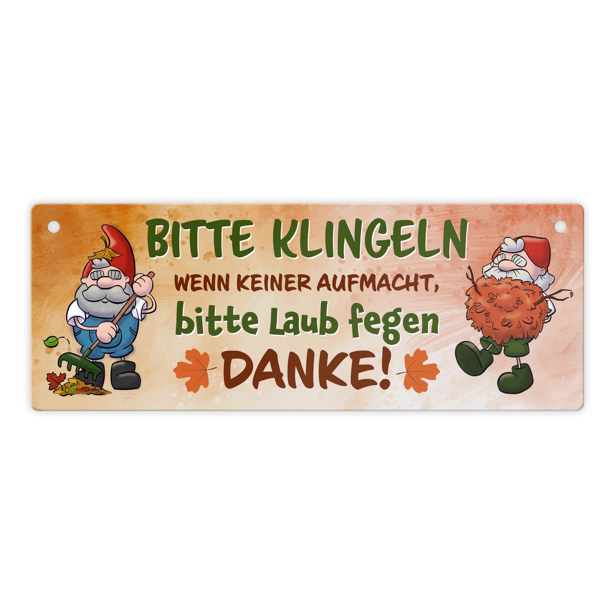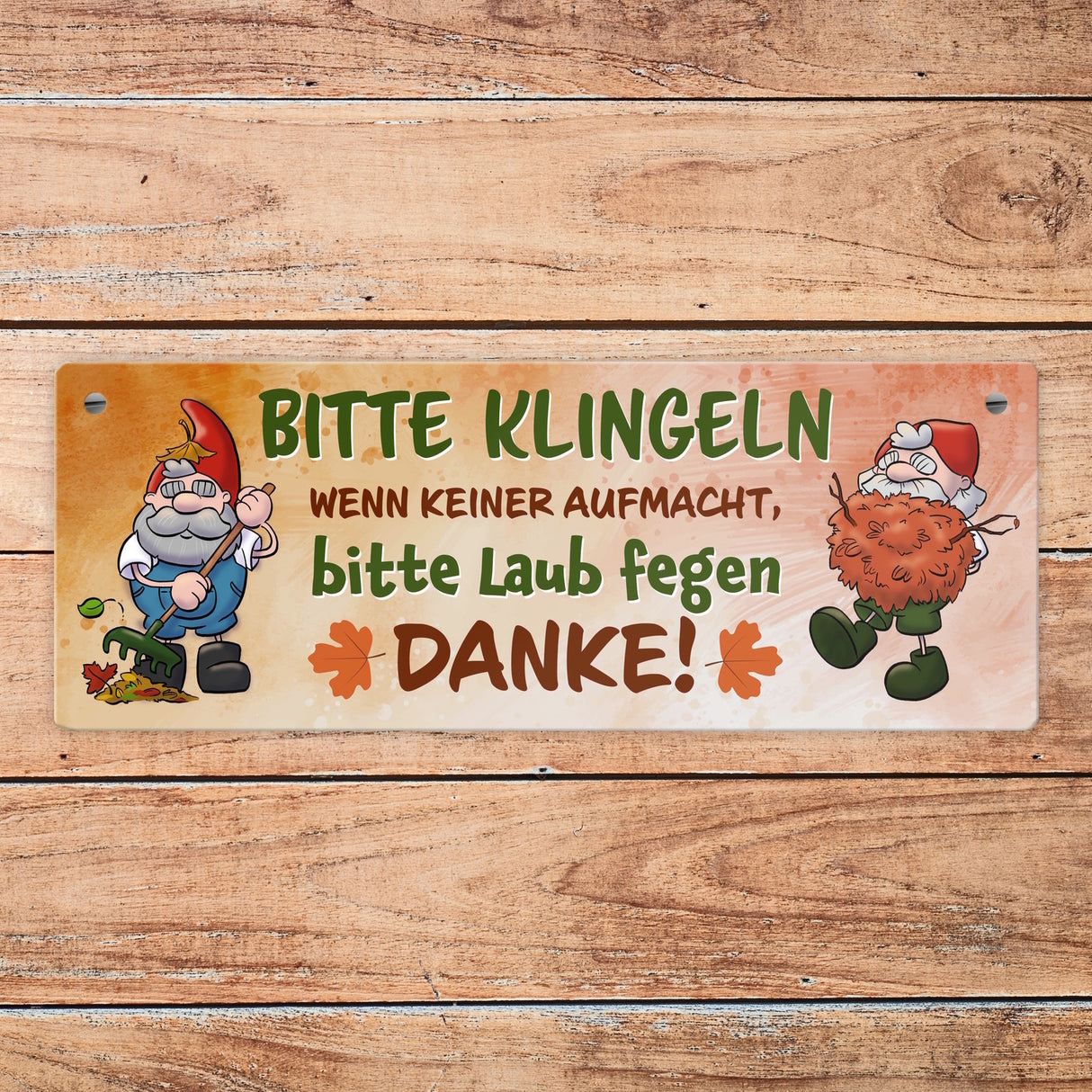 - 1x Bitte klingeln - wenn keiner aufmacht, Laub fegen Gartenzwerg Metallschild in der gewählten Größe