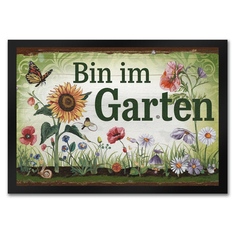 Bin im Garten Schmetterling und Blumen Fußmatte in 35x50 cm