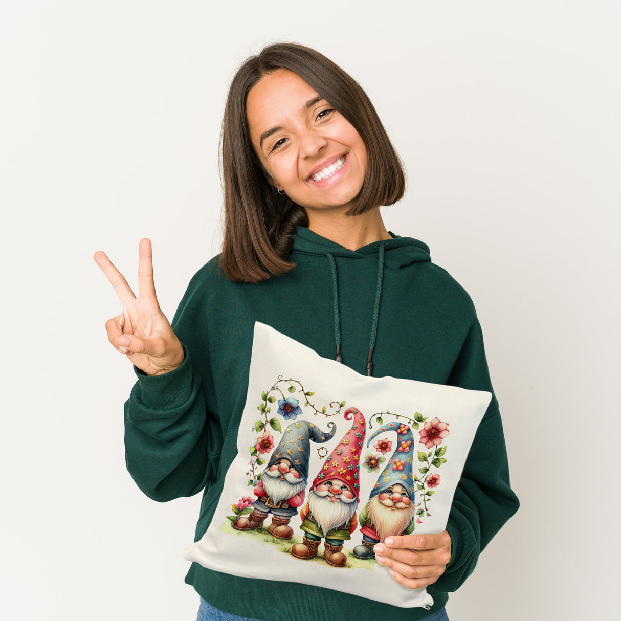 • Schlummern wie im Zwergenland! Unsere "drei lustige Gartenzwerge Kissen" sind die kecksten Schlafraben. Mit ihren knallbunten Mützen und den frechen Grinsen, verströmen sie herrlich schelmische Vibes. Perfekt für alle, die ihrem Sofa einen Hauch von gnomischer Heiterkeit verleihen wollen!