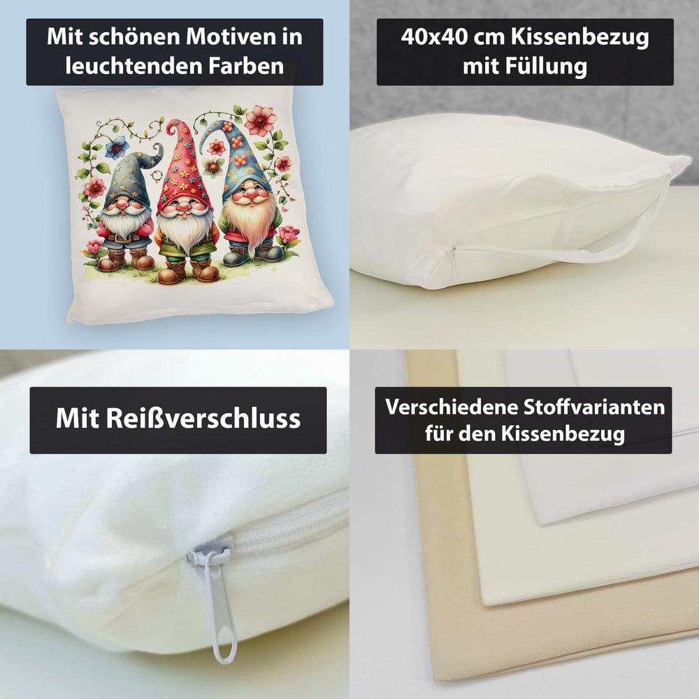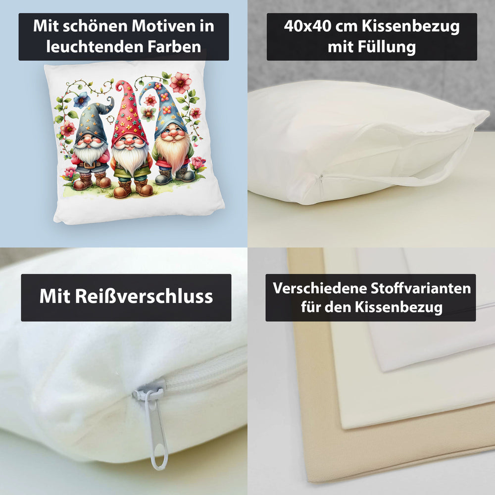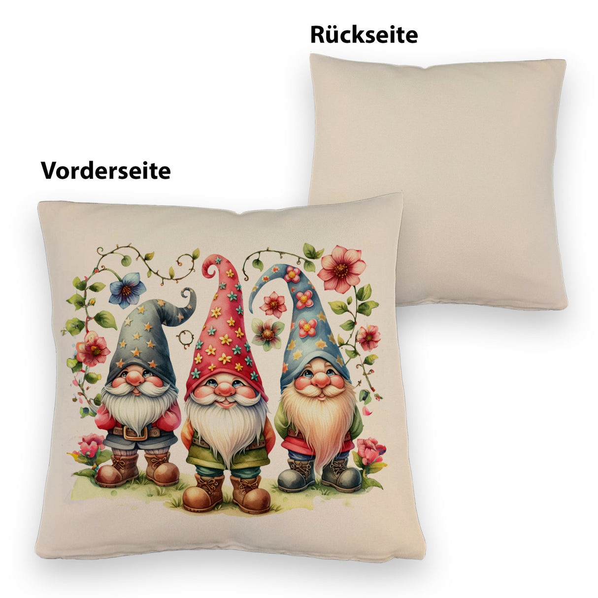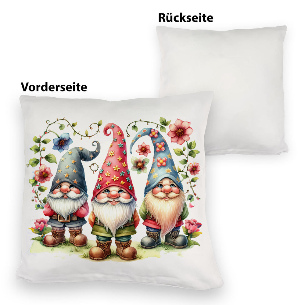 • 1x Drei lustige Gartenzwerge Kissen in der gewählten Ausführung