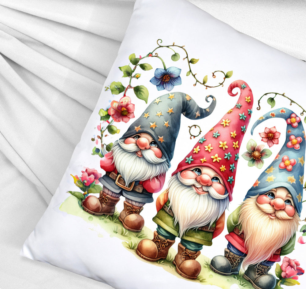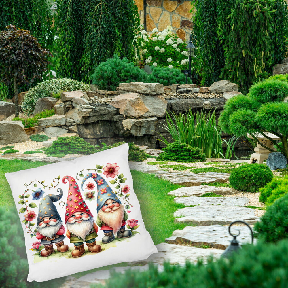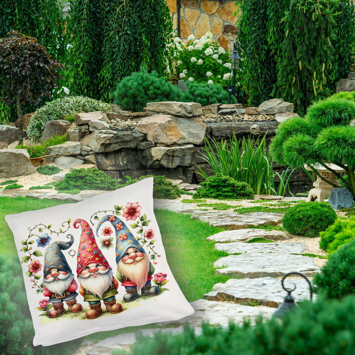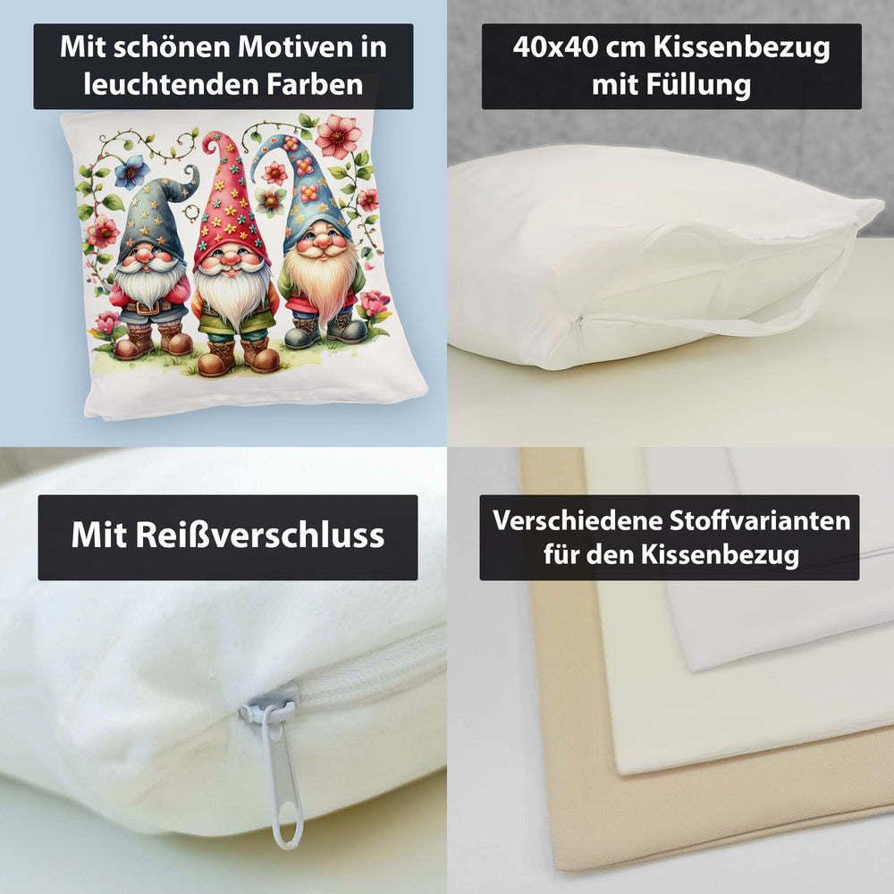 • 1x Drei lustige Gartenzwerge Kissen in der gewählten Ausführung