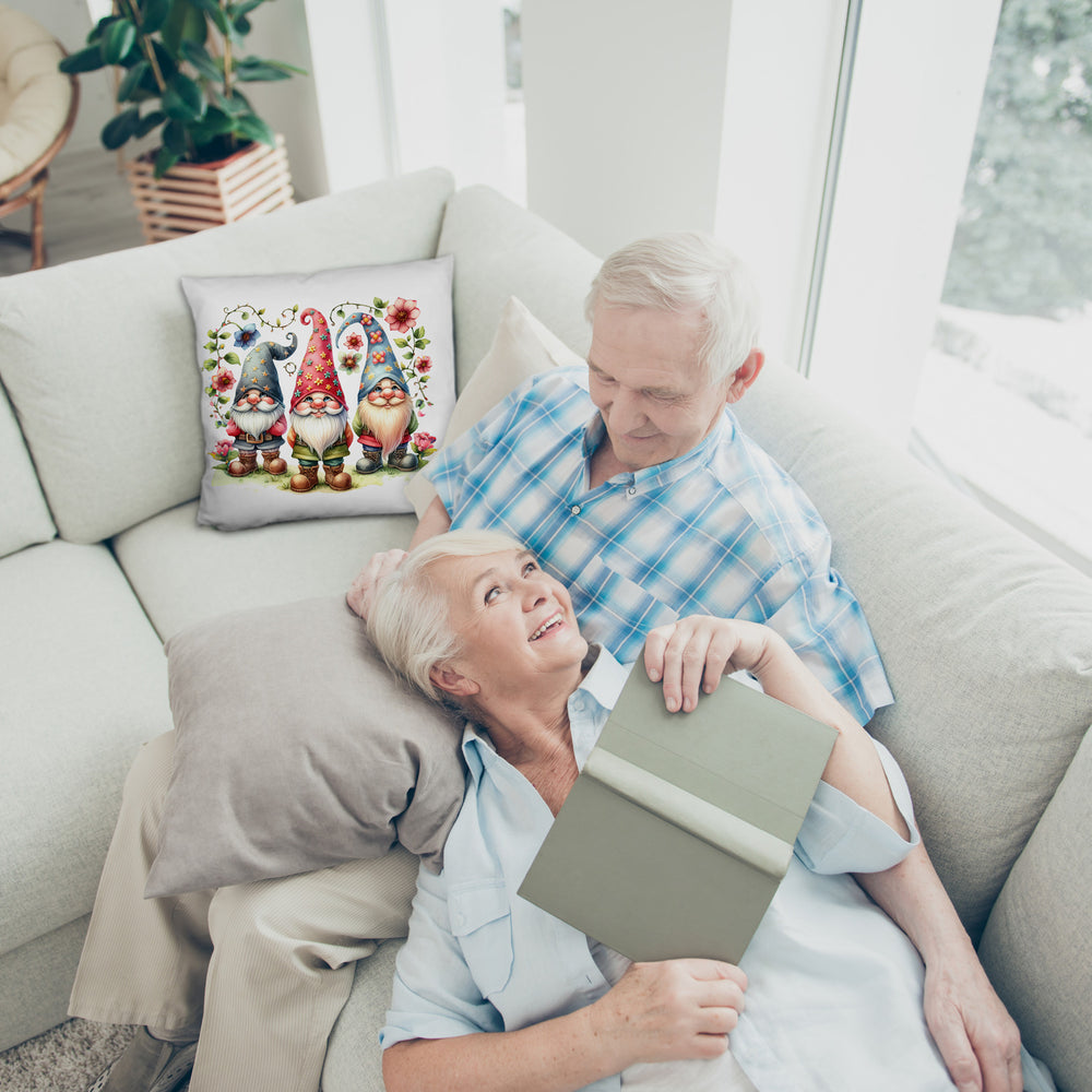 Freche Gartenzwerge mit kleinem Haus Kissen