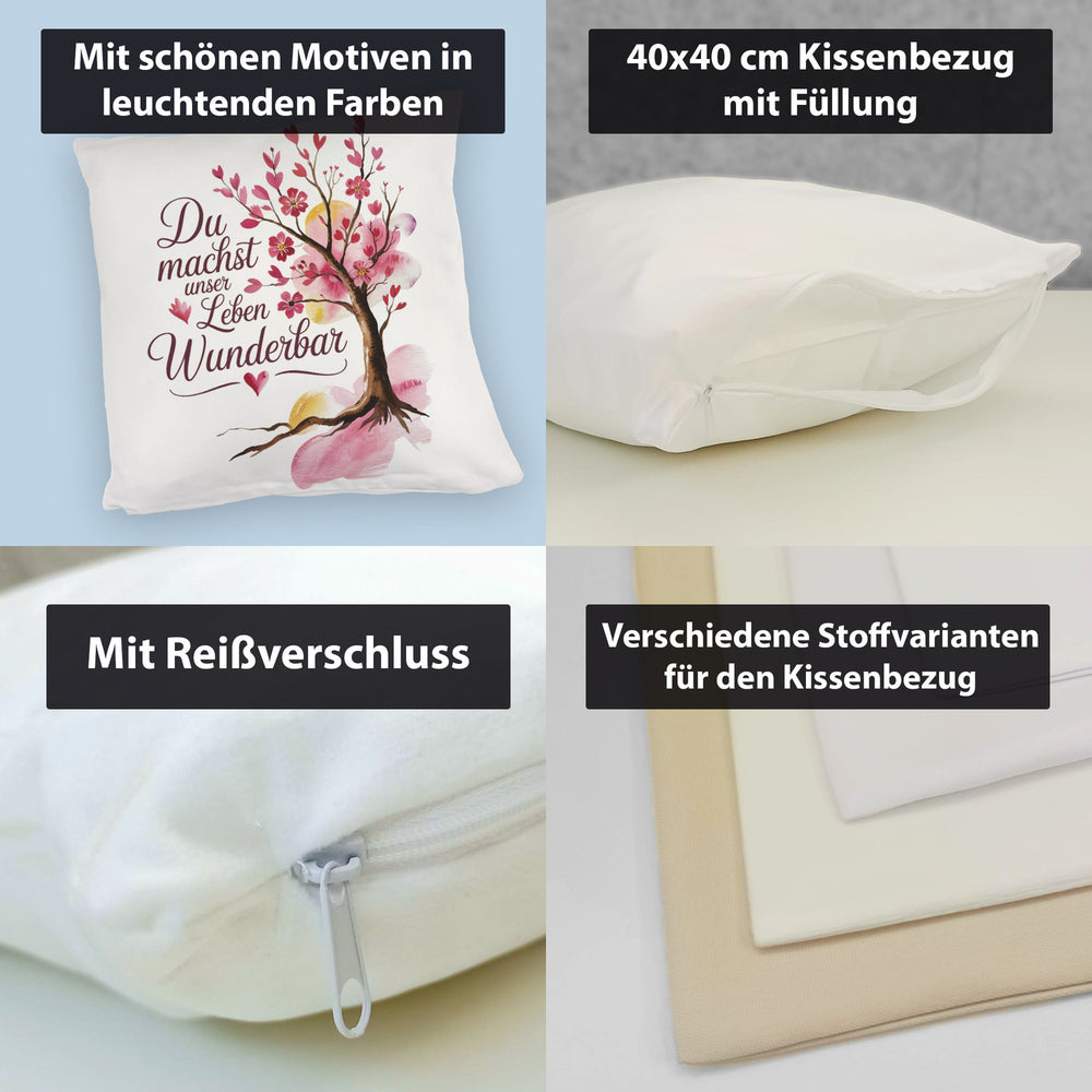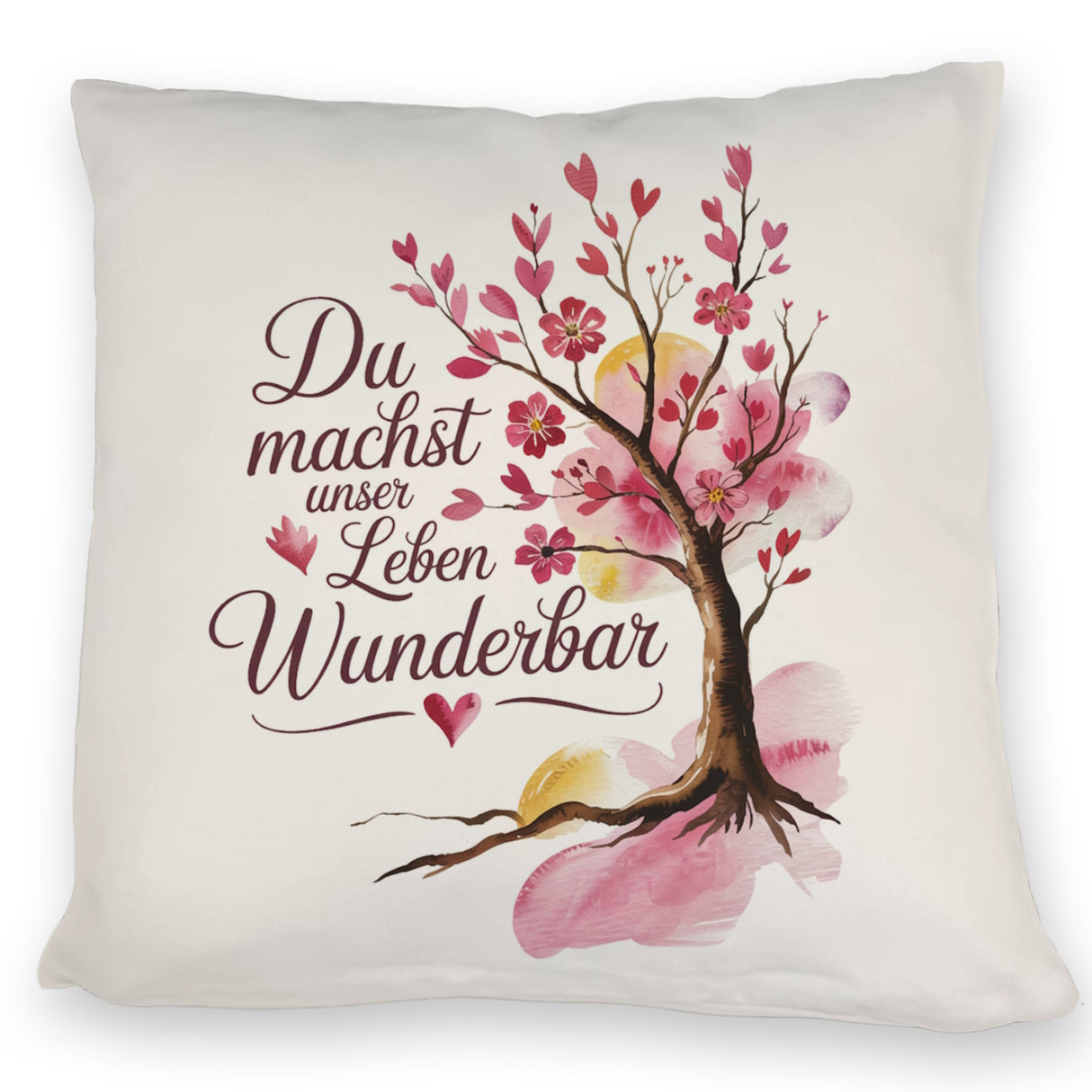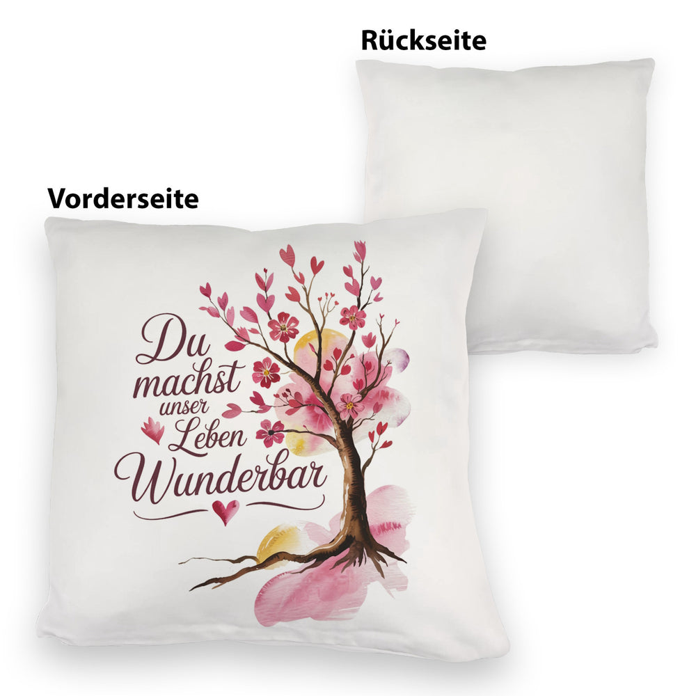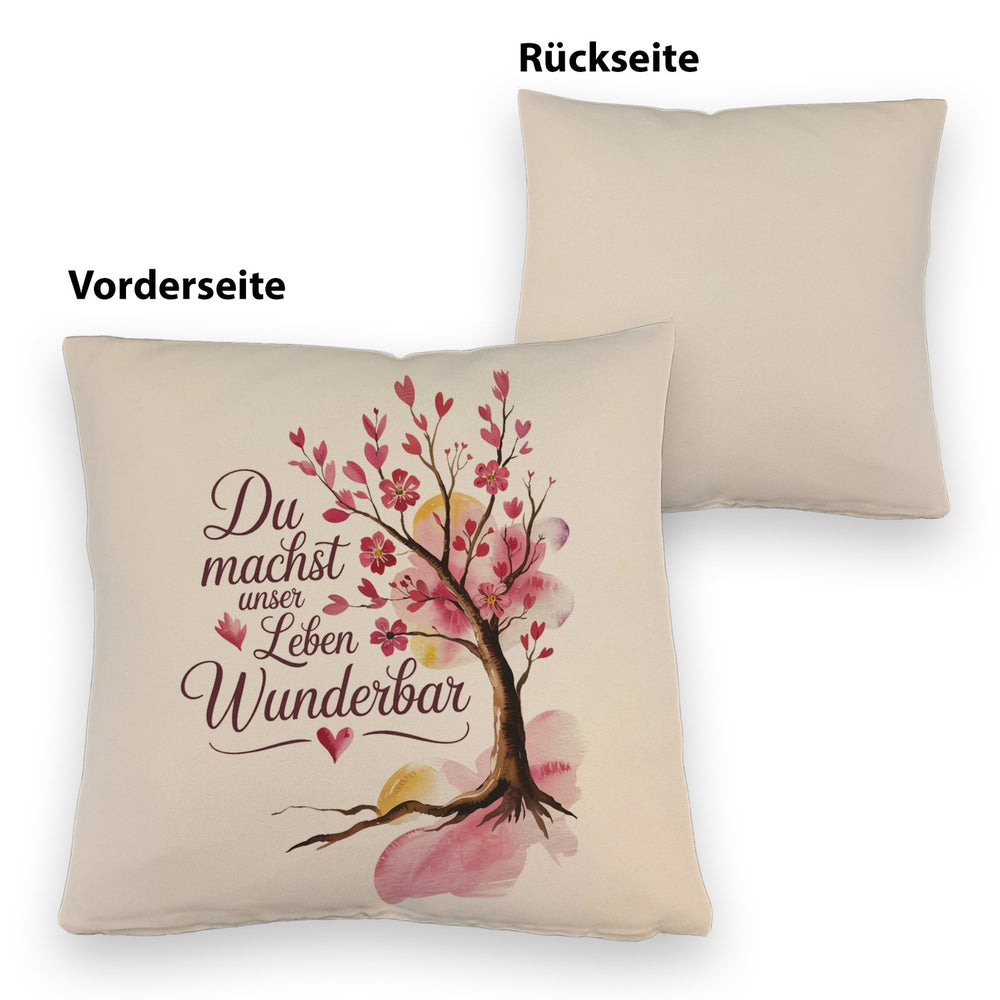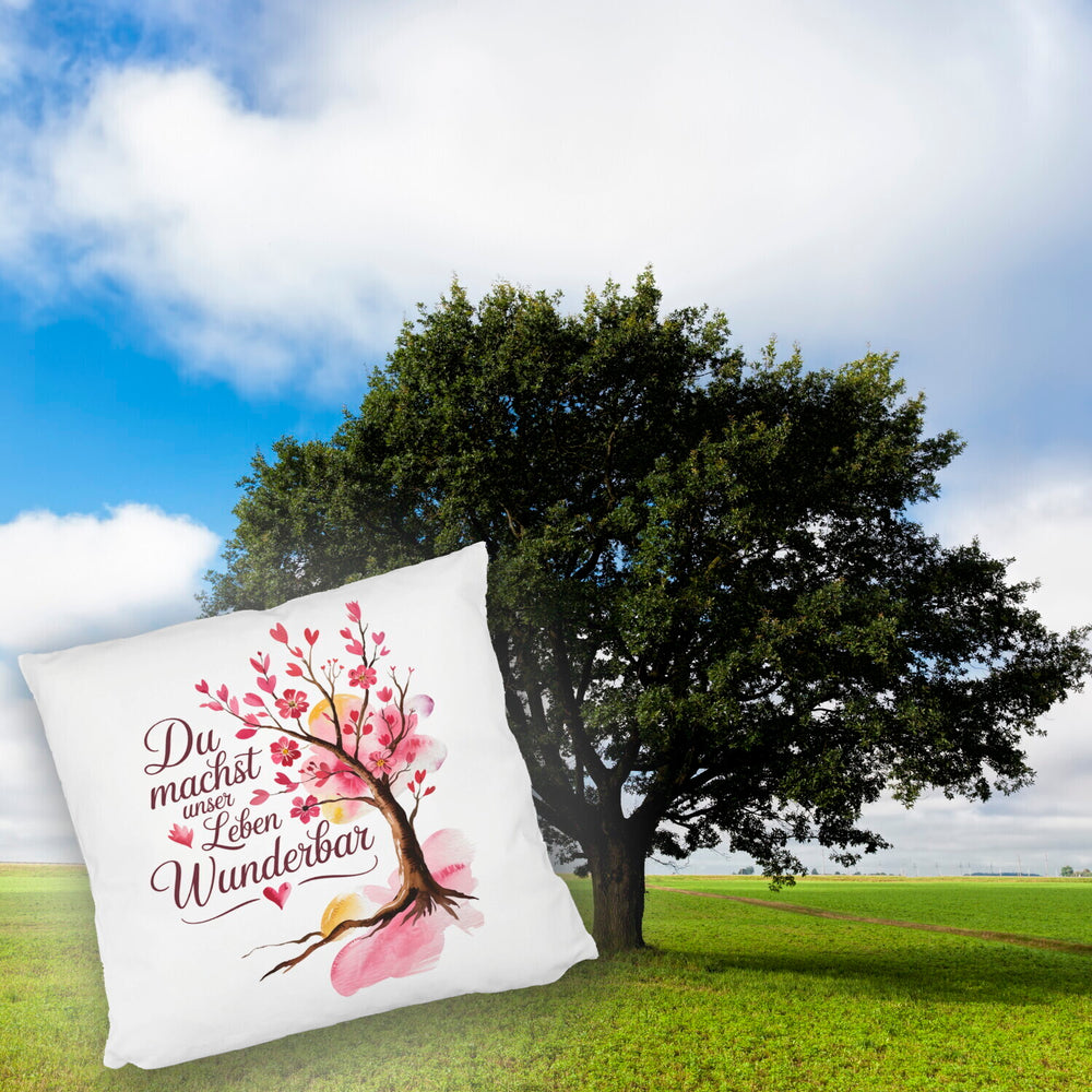 - 1x Du machst unser Leben wunderbar Kissen Baum mit Blumen in der gewählten Ausführung