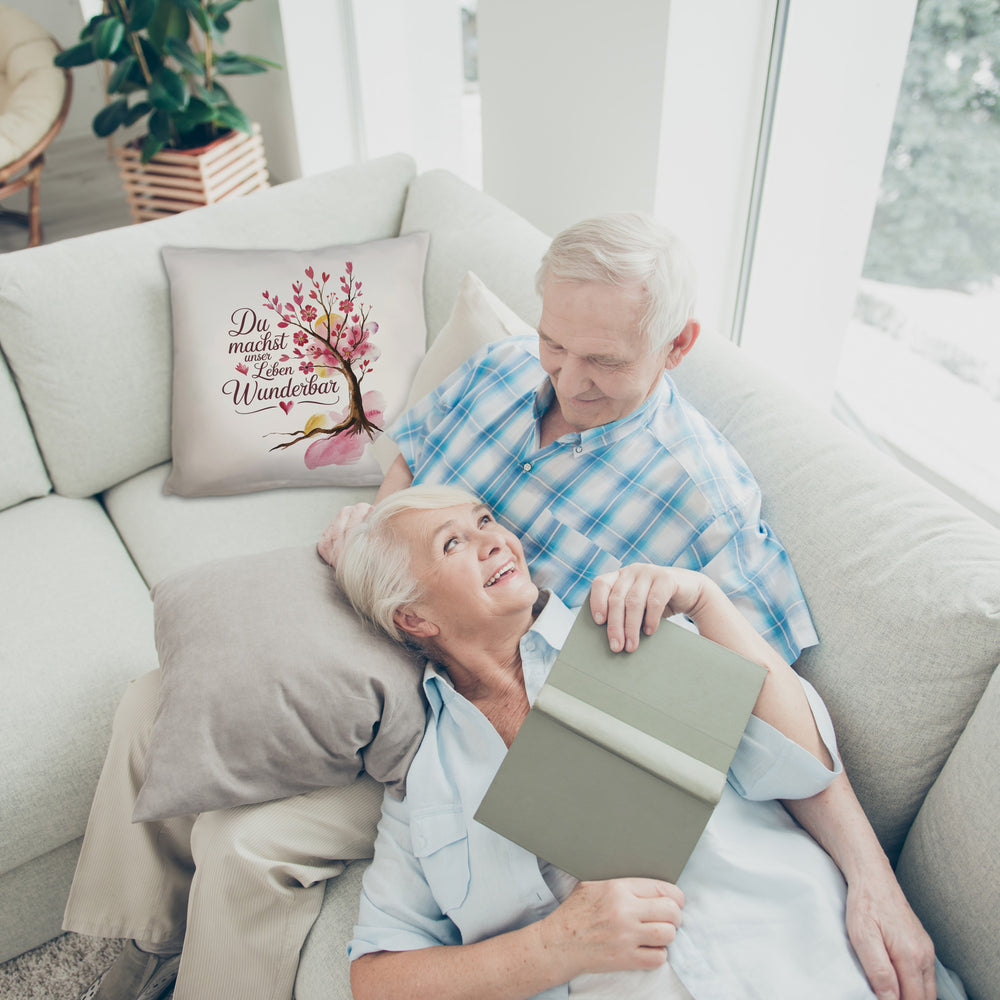 Du machst unser Leben wunderbar Kissen Baum mit Blumen