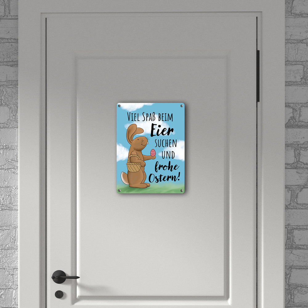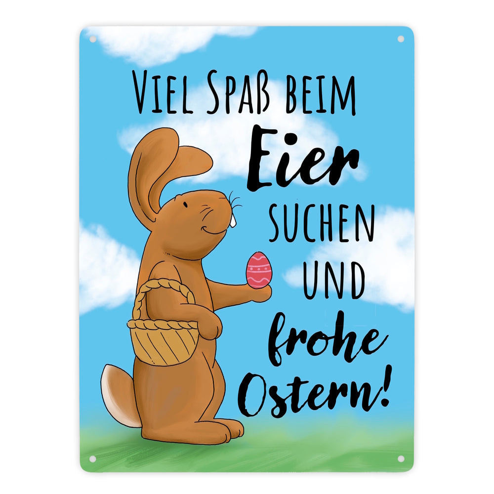 - 1x Eier suchen und frohe Ostern Metallschild mit niedlichem Hasen in der gewählten Größe
