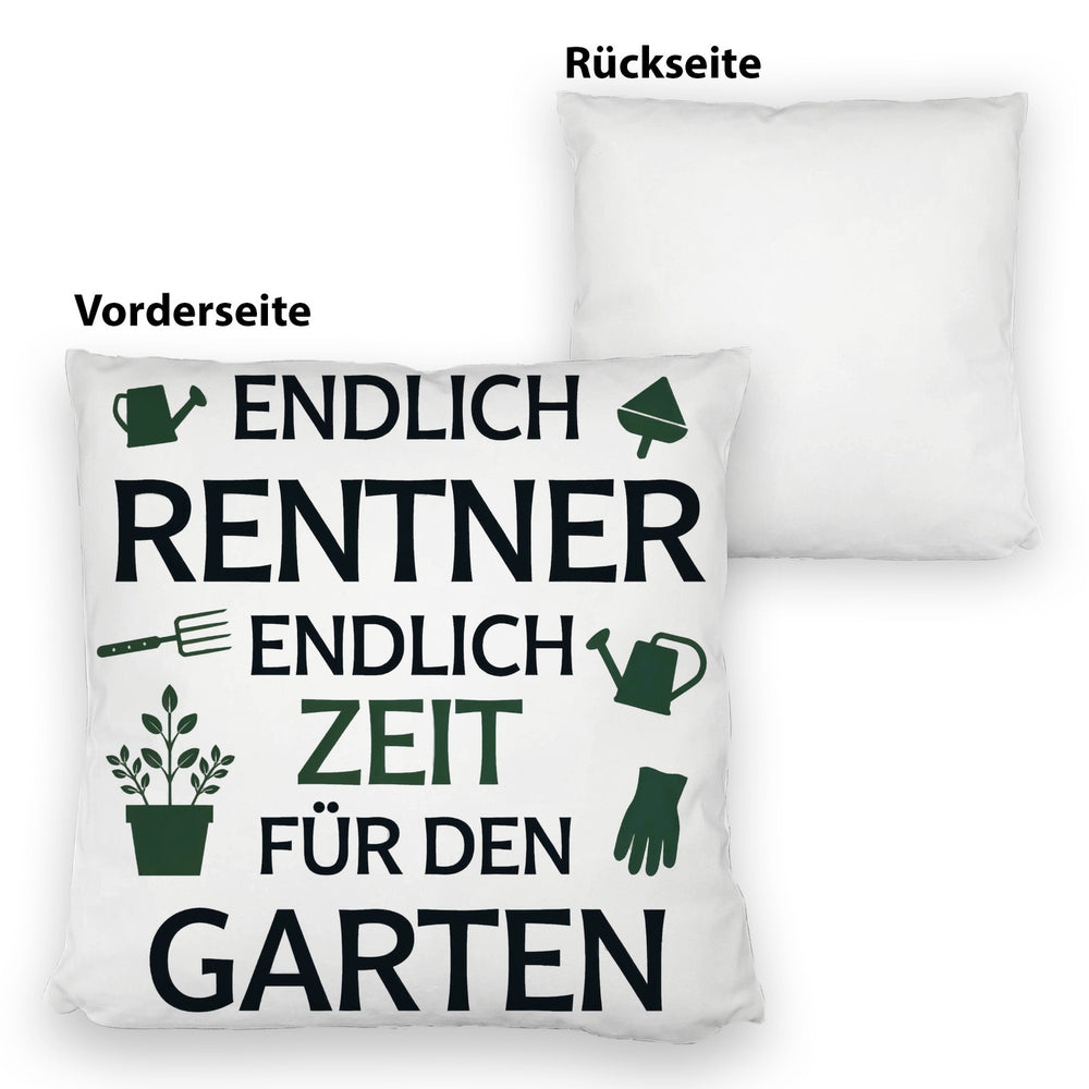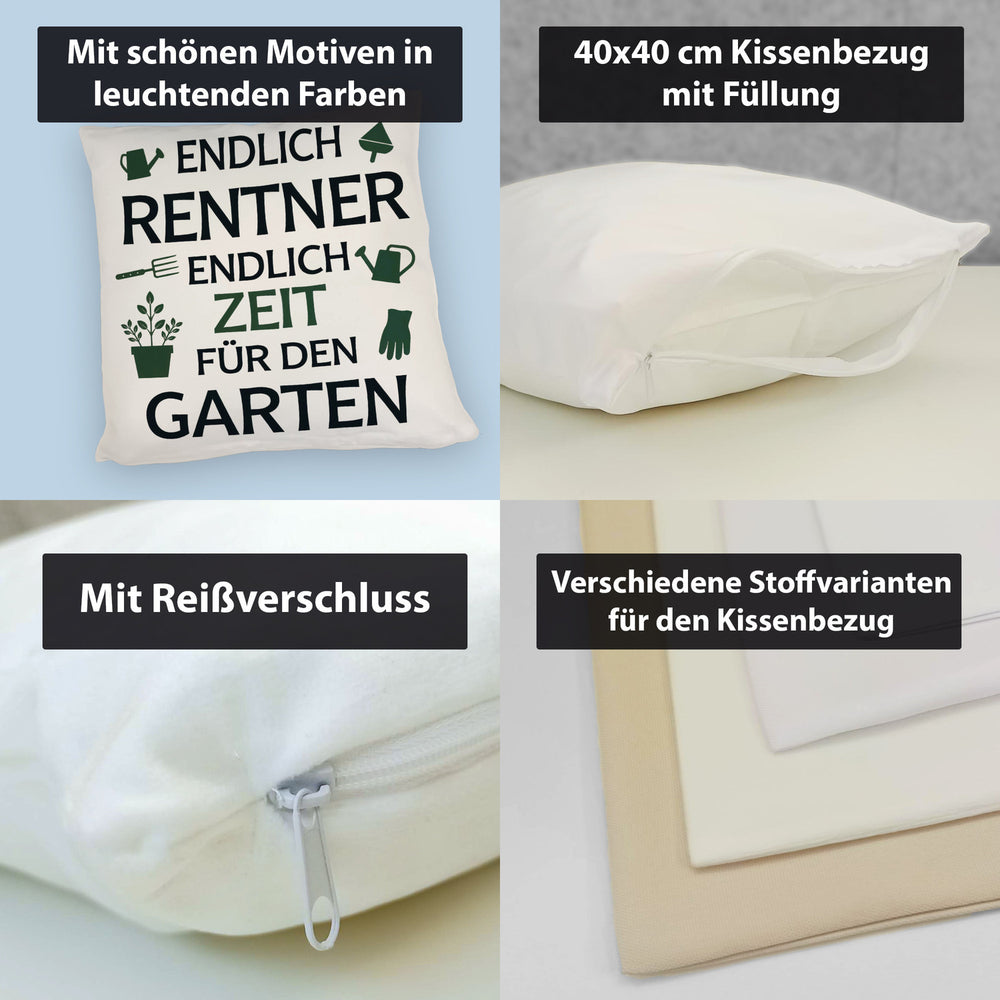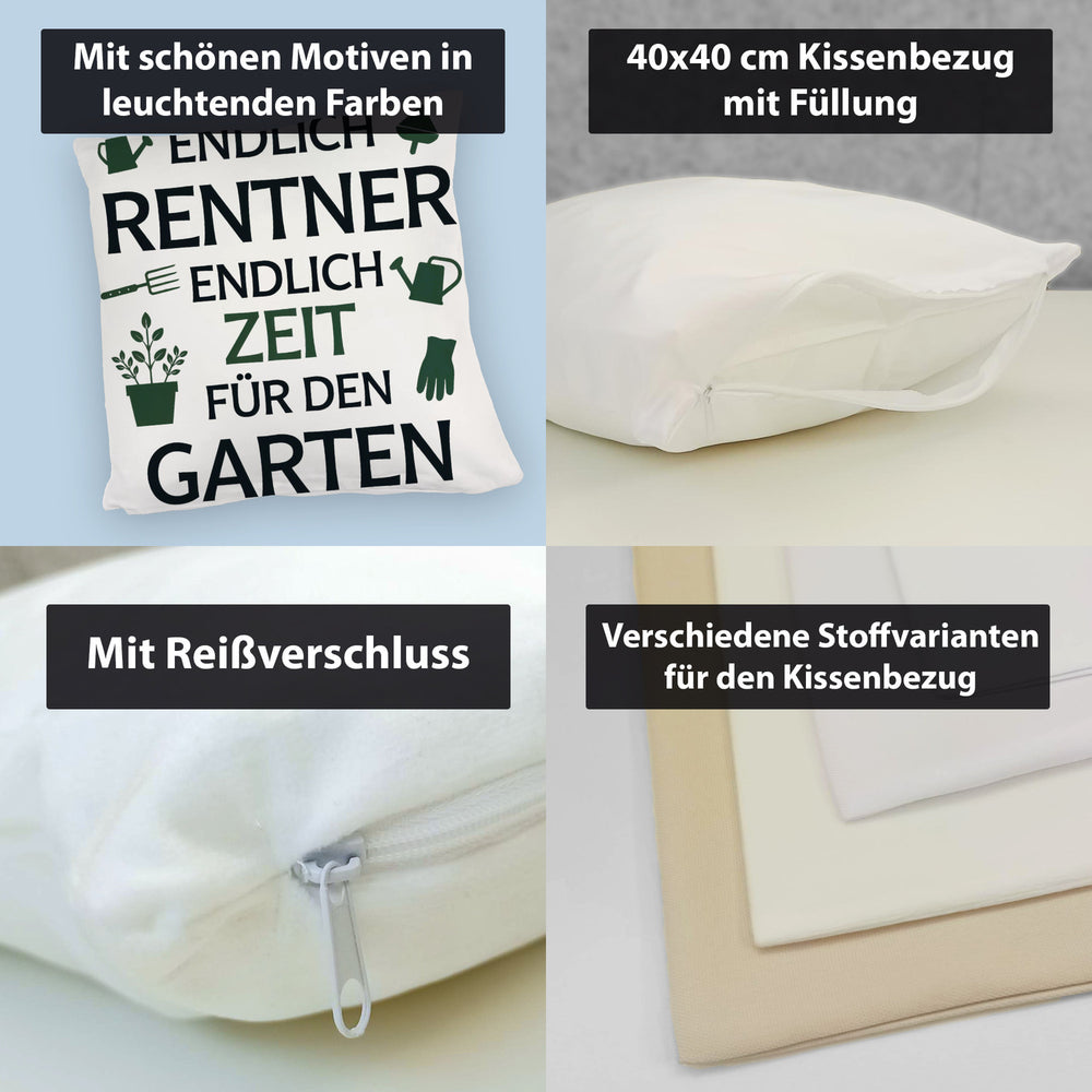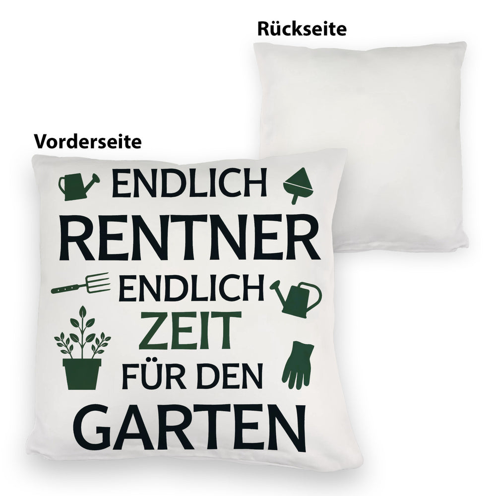 - 1x Endlich Rentner - ZEIT FÜR DEN GARTEN Kissen in der gewählten Ausführung