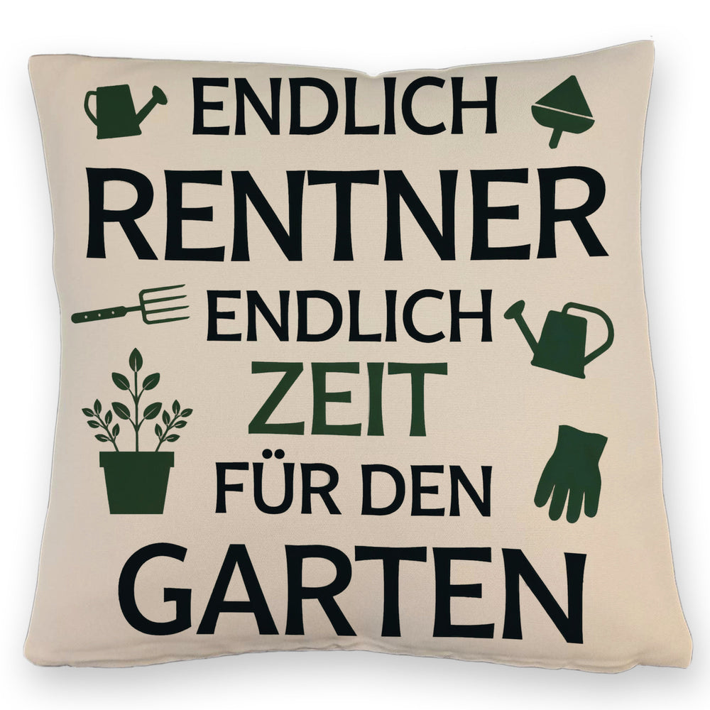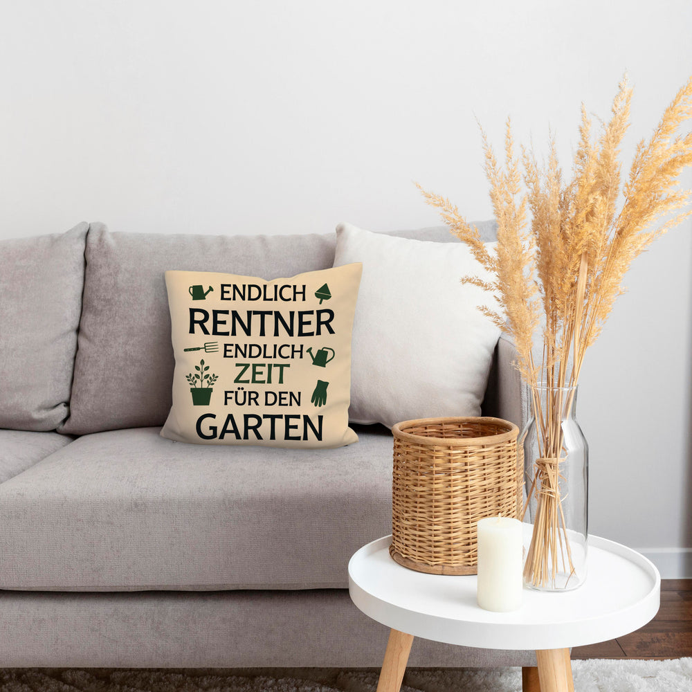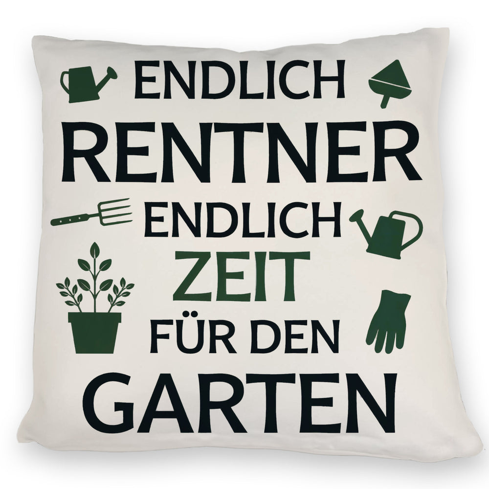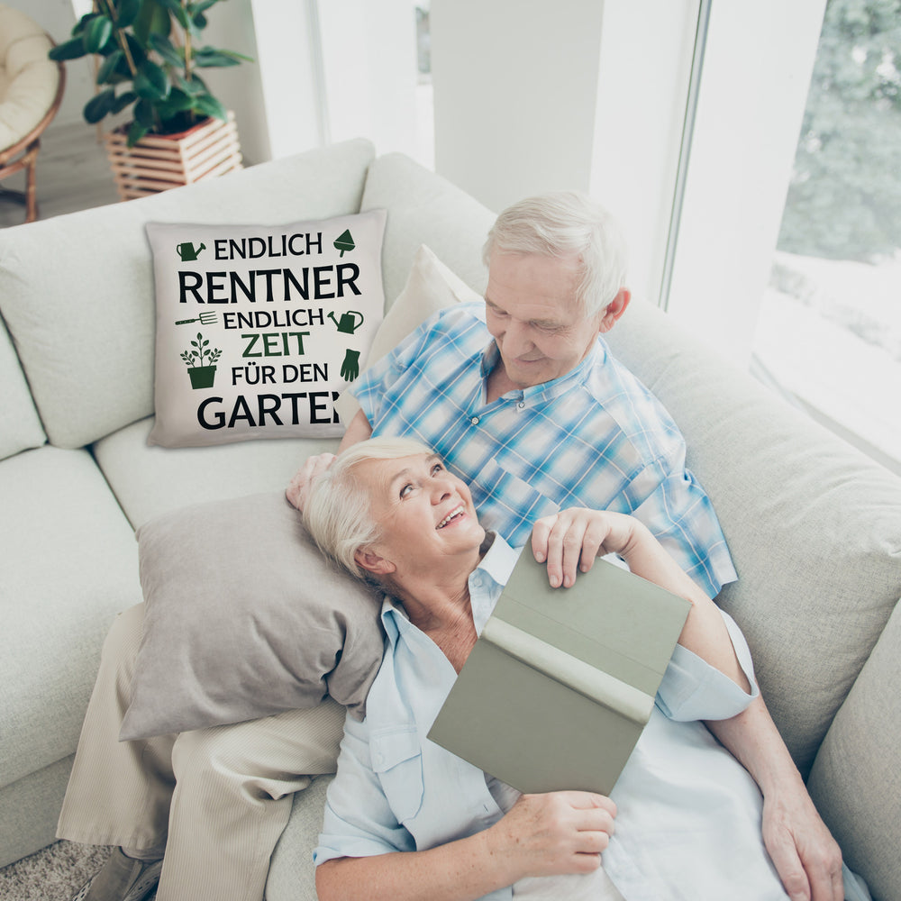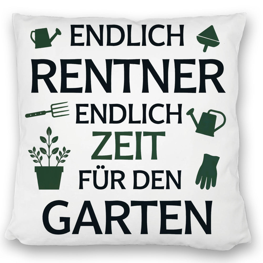 - 1x Endlich Rentner - ZEIT FÜR DEN GARTEN Kissen in der gewählten Ausführung