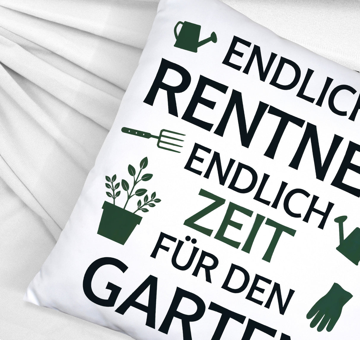 - Mach's dir gemütlich auf dem "Endlich Rentner - ZEIT FÜR DEN GARTEN" Kissen! Das Kissen zeigt nicht nur eine schicke Grafik, sondern auch den Traum jedes frischgebackenen Rentners: Endlich Zeit für den Garten! Perfekt, um die wohlverdiente Freizeit inmitten von Topfpflanzen und Gartengeräten zu genießen.