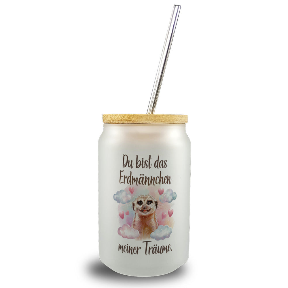 Erdmännchen meiner Träume Trinkglas mit Bambusdeckel