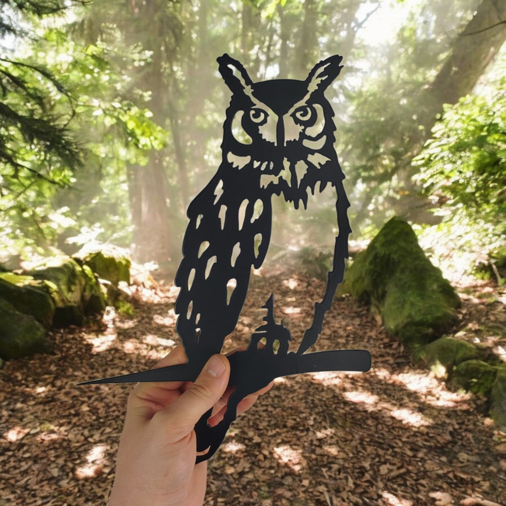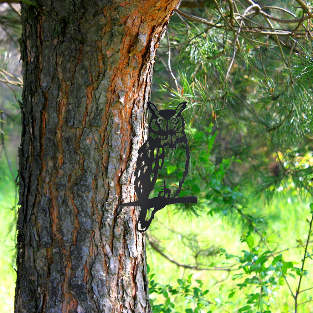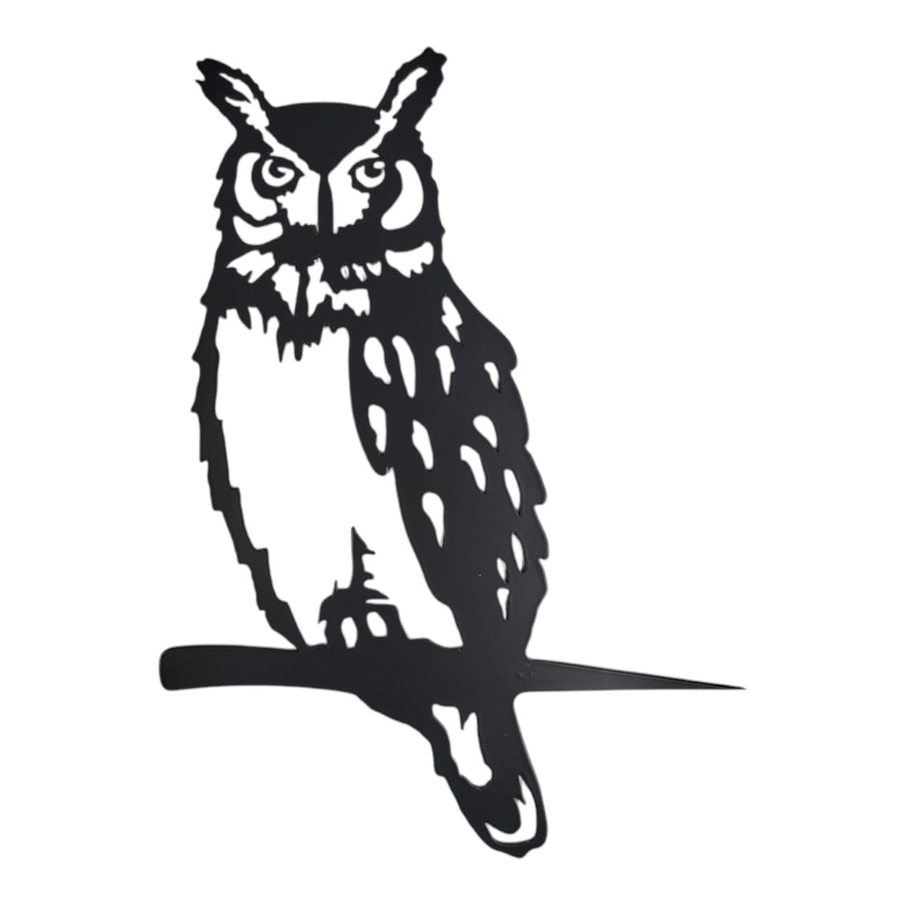 - Der Gartenstecker besticht durch sein einzigartiges Design: Eine weise Eule aus schwarzem Metall, die majestätisch auf einem Ast thront. Einfach die Spitze in eine Oberfläche Ihrer Wahl schlagen – sei es ein Baum oder ein Blumenkübel – und schon wird Ihre Gartendekoration auf ein neues Level gehoben!