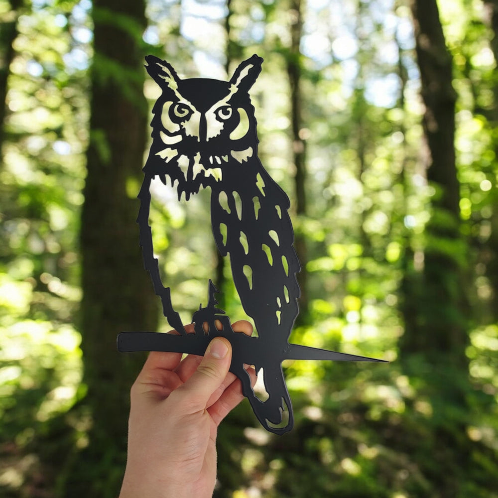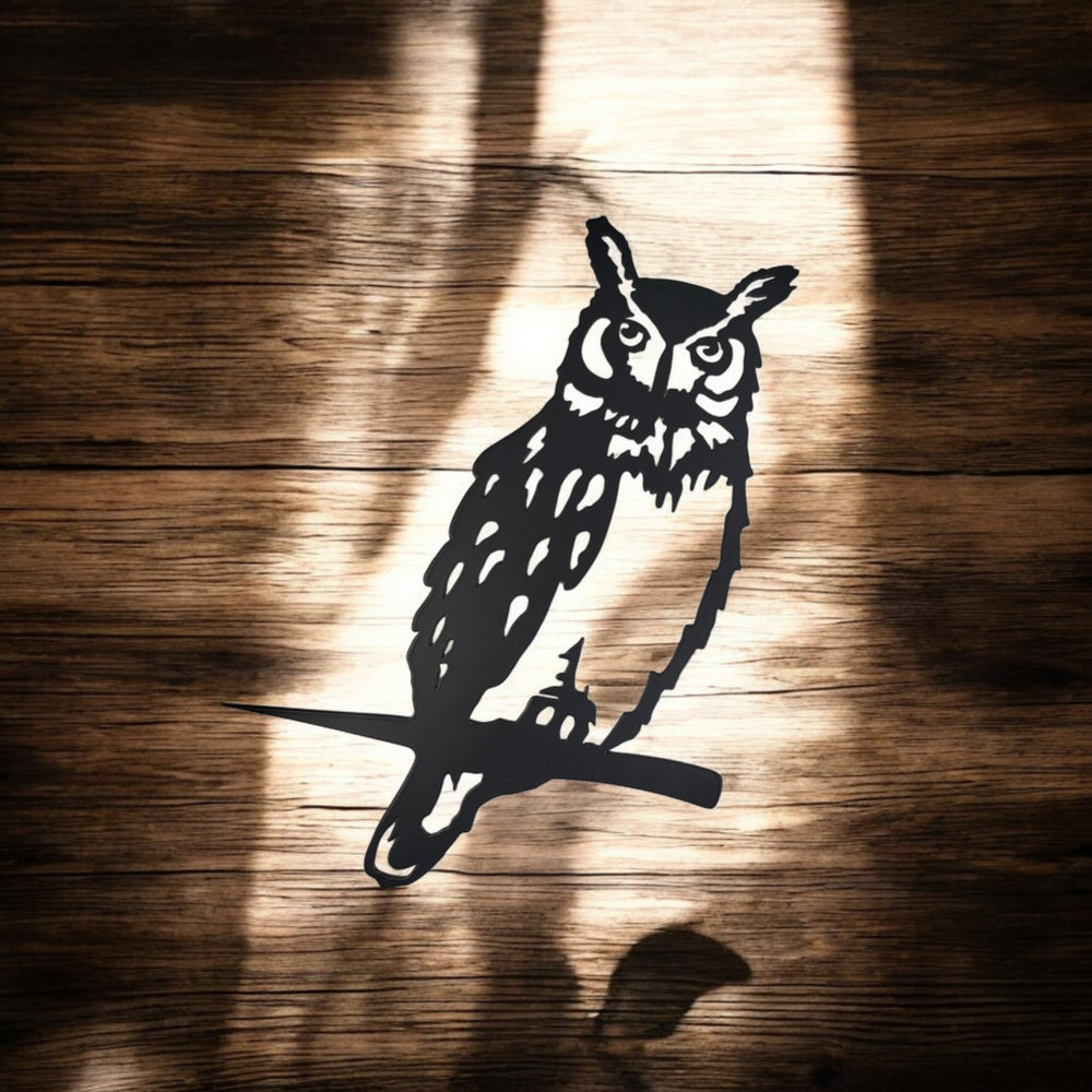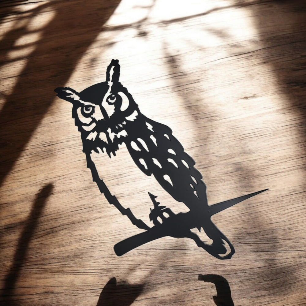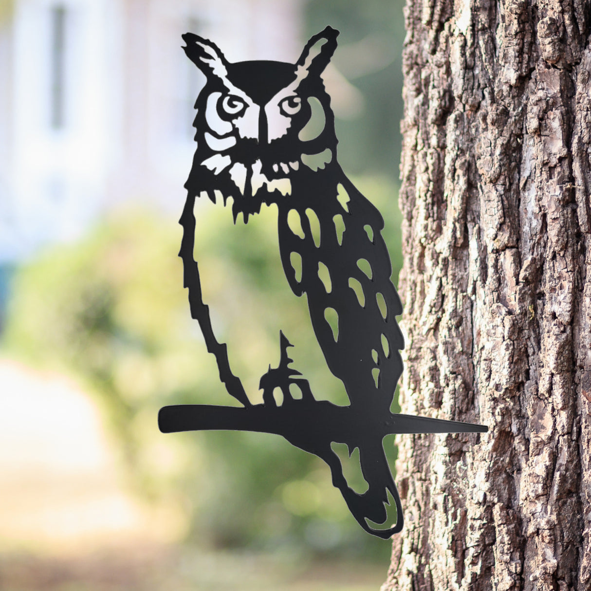 - Der Gartenstecker besticht durch sein einzigartiges Design: Eine weise Eule aus schwarzem Metall, die majestätisch auf einem Ast thront. Einfach die Spitze in eine Oberfläche Ihrer Wahl schlagen – sei es ein Baum oder ein Blumenkübel – und schon wird Ihre Gartendekoration auf ein neues Level gehoben!