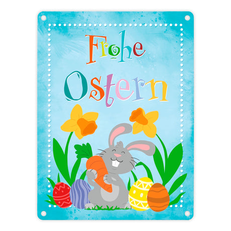 Frohe Ostern Metallschild mit niedlichem Osterhasen