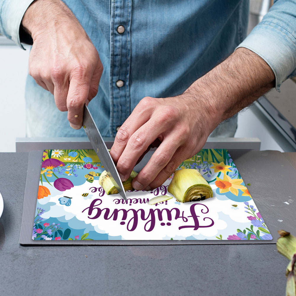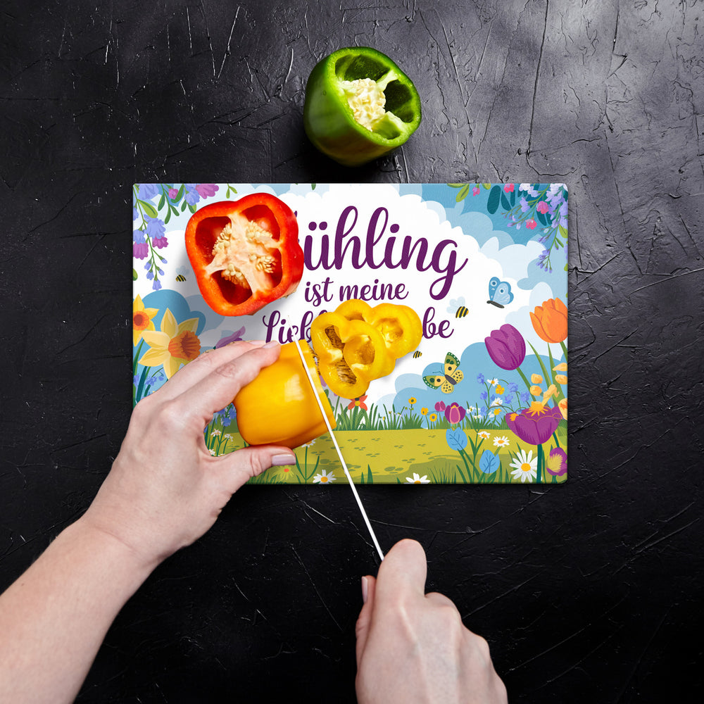 - 1x Frühlingswiese Schneidebrett aus Glas - Frühling ist meine Lieblingsfarbe in der gewählten Größe