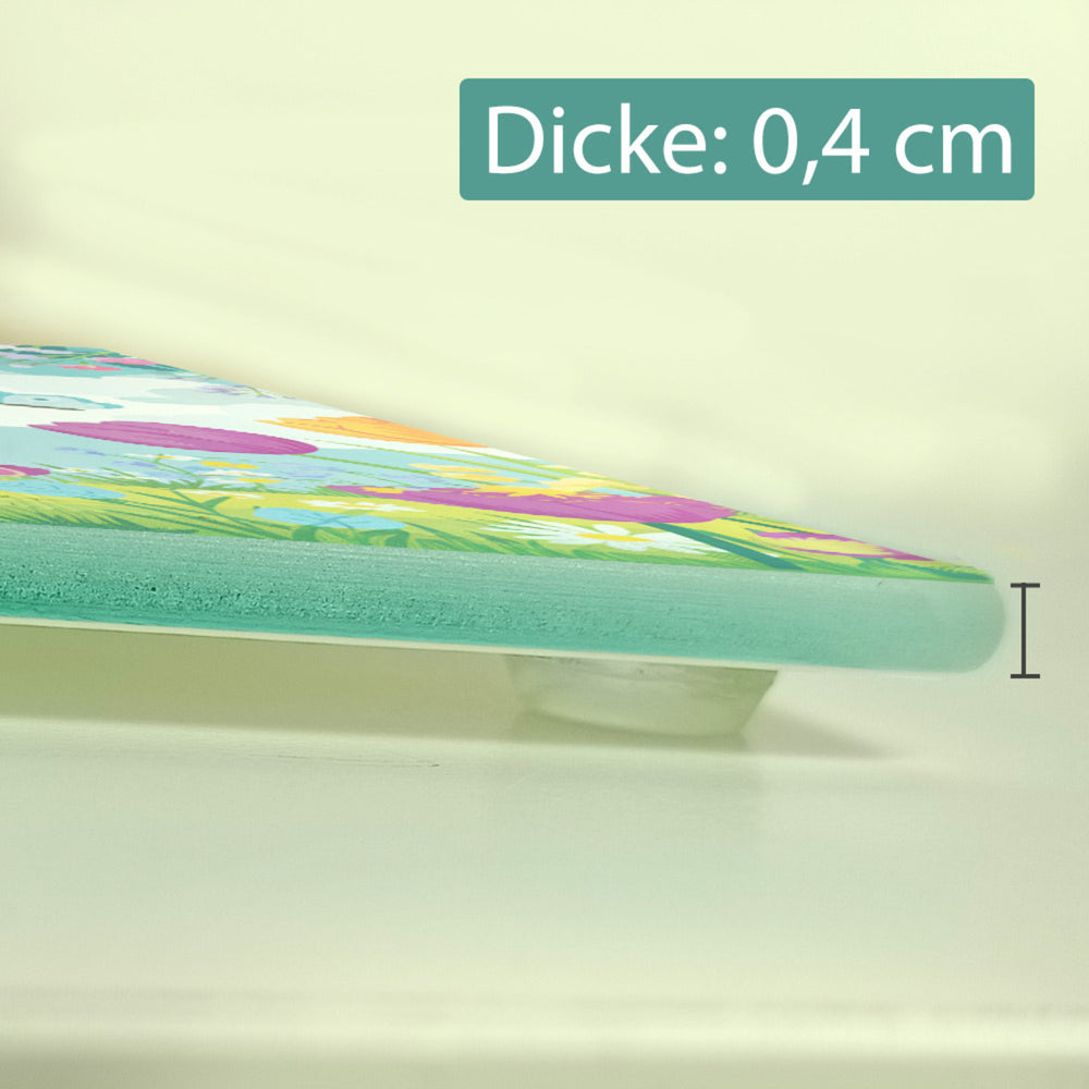Verleihen Sie Ihrer Küche Qualität und Stil mit unserem mit Liebe designten Frühlingswiese Schneidebrett. Dieses bunte und robuste Küchenaccessoire ist nicht nur praktisch, sondern auch ein echter Hingucker. Greifen Sie zu und bringen Sie den Frühling zu Hinweise: Glas mit rutschfesten Gumminoppen