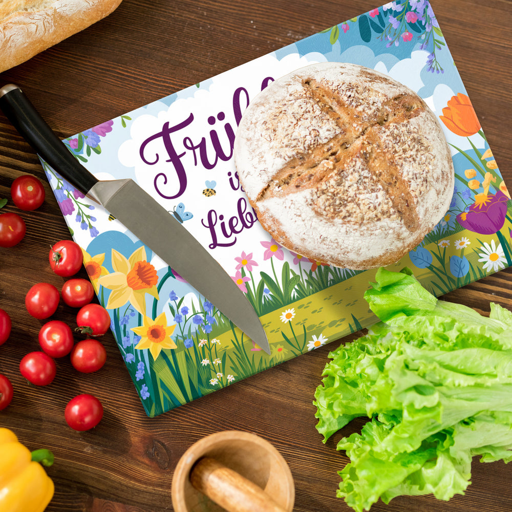 Frühlingswiese Schneidebrett aus Glas - Frühling ist meine Lieblingsfarbe