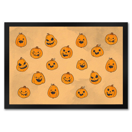 Fußmatte im Halloween Design - mit vielen lustigen geschnitzten Kürbisköpfen