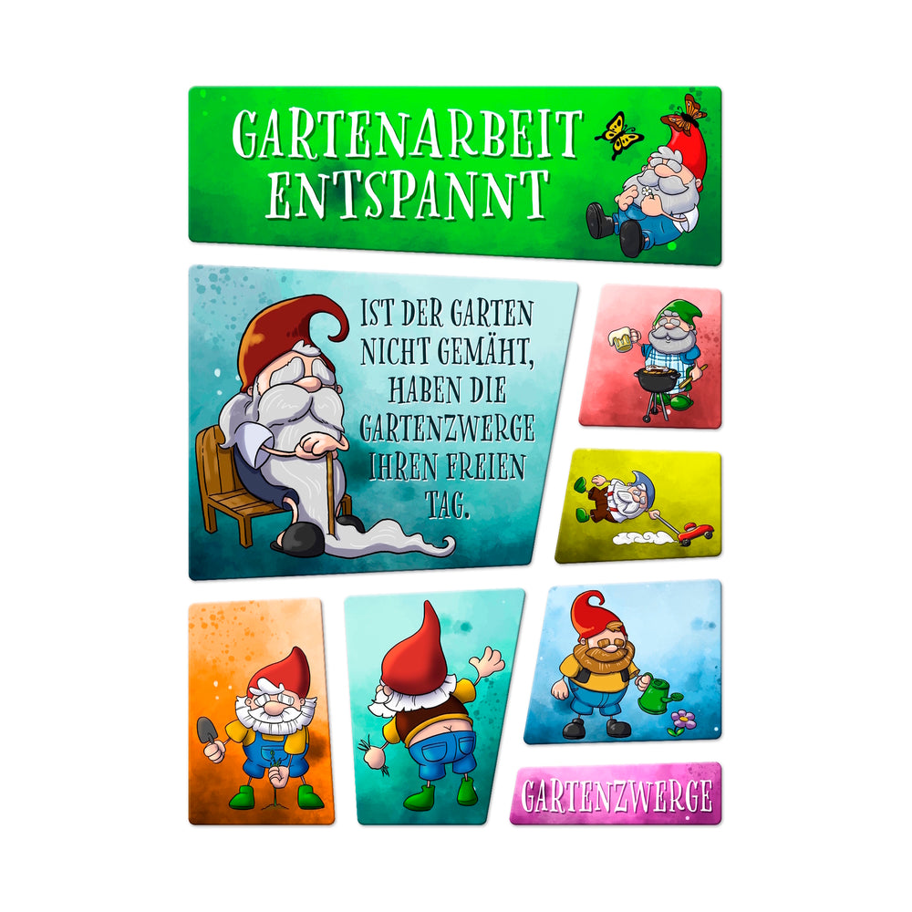 Das Magnet-Set hat nicht nur Bilder mit Gartenzwergen, die lustige Gartenbeschäftigungen nachgehen, sondern ist noch nützlich zum Befestigen von z.B. Notizen. Hinweise:
