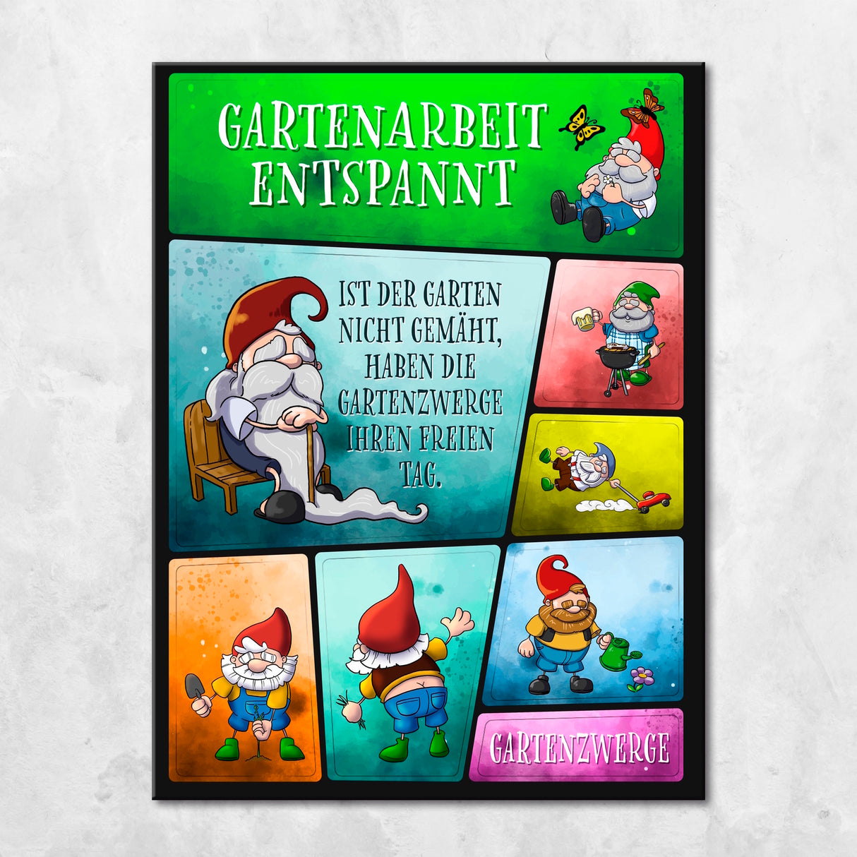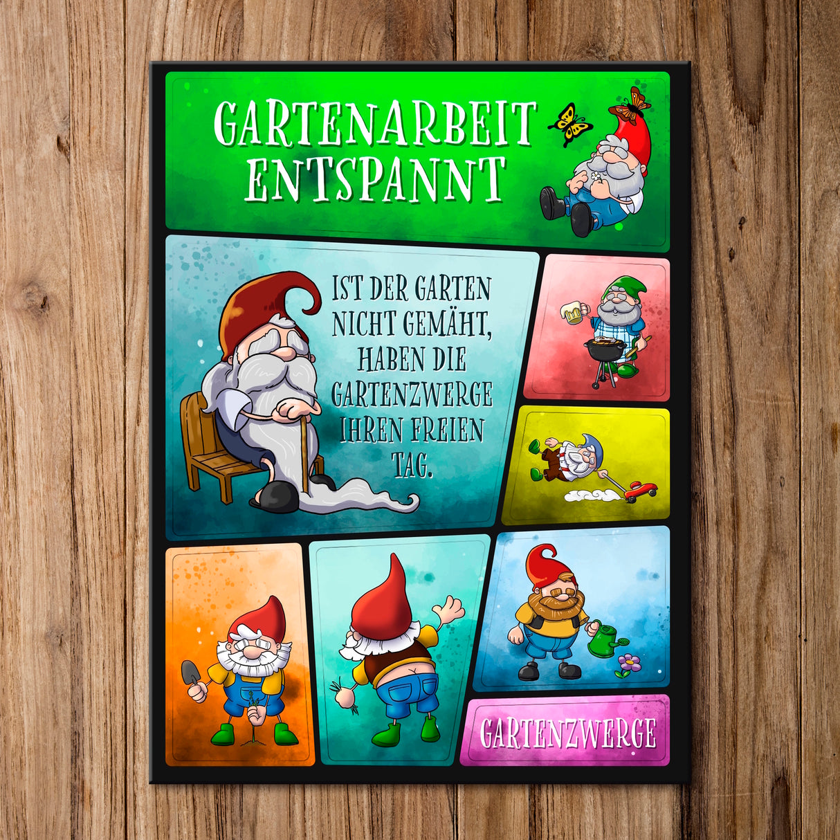 Gartenregeln Metallschild mit lustigen Gartenzwergen