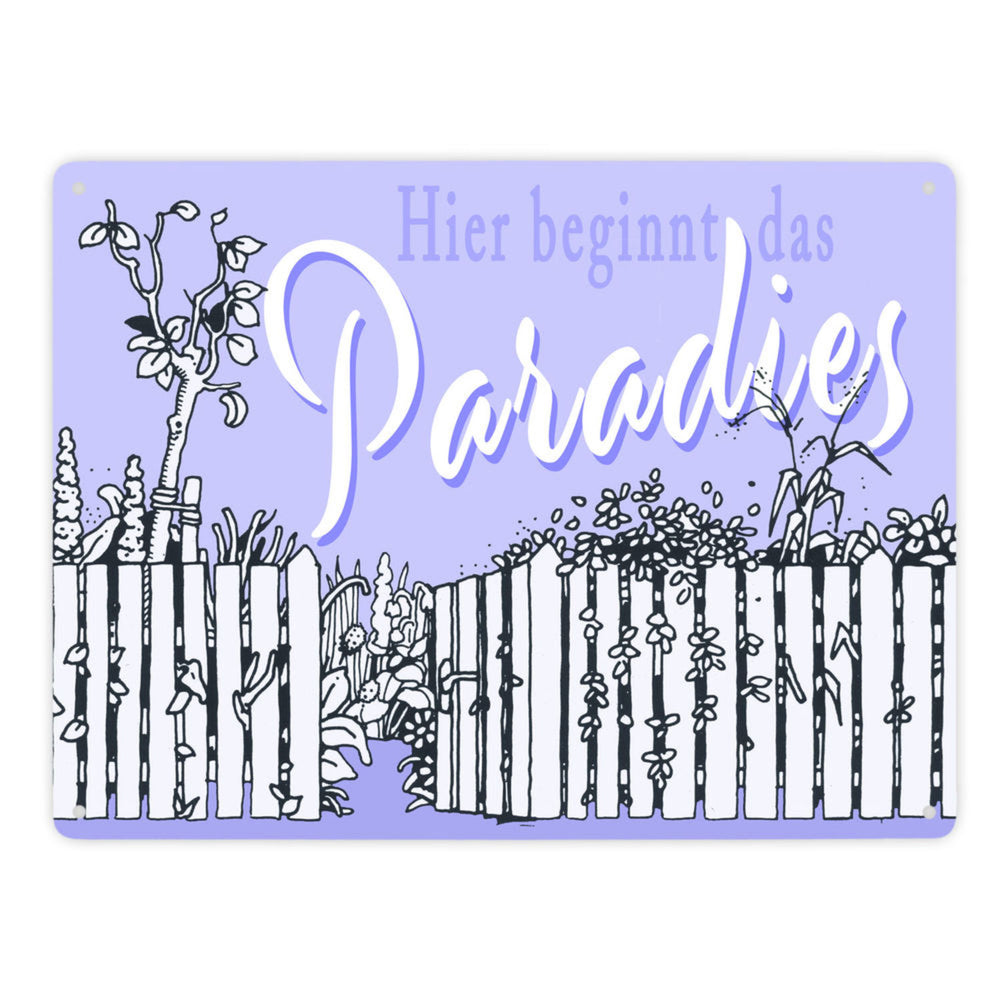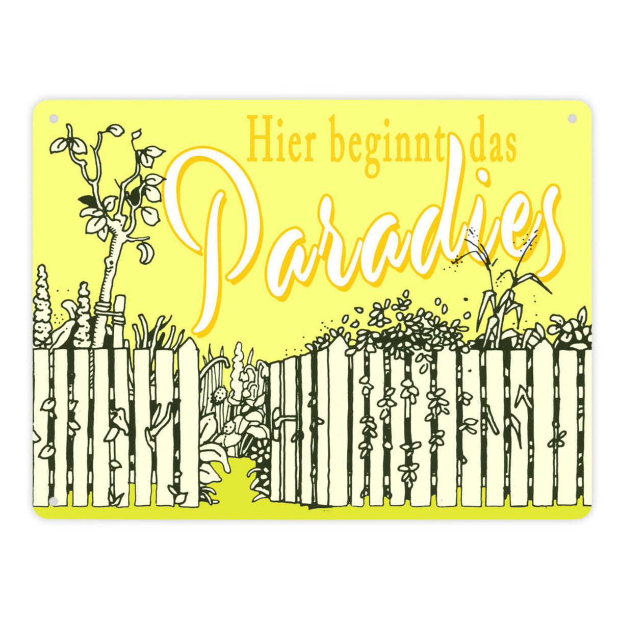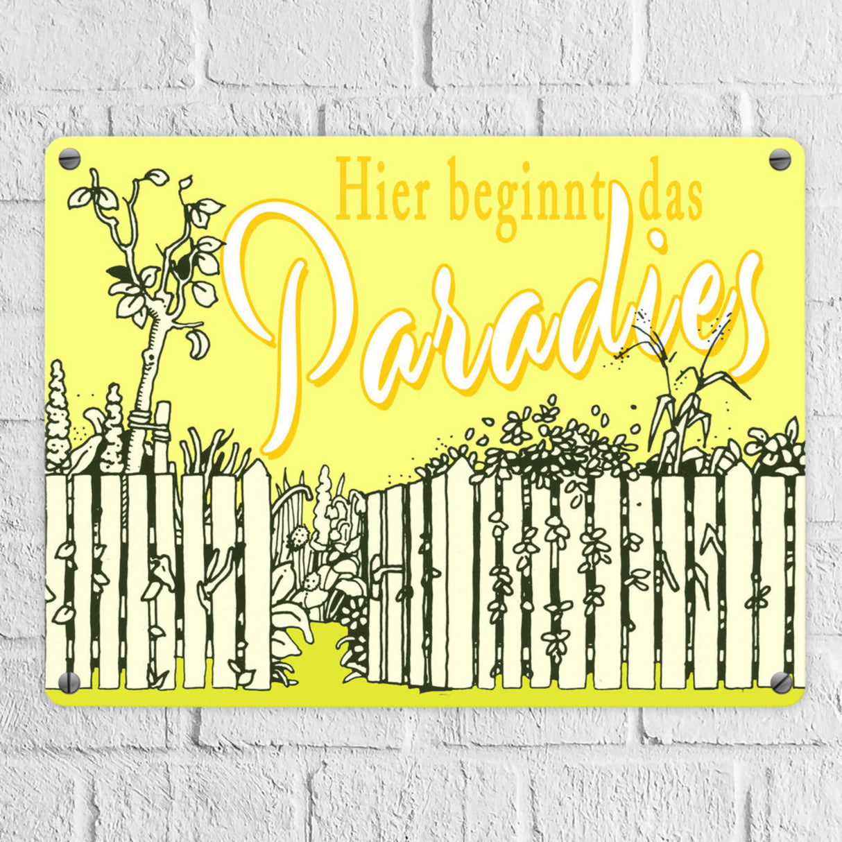 - 1x Gartenparadies Metallschild orange zum Thema Urlaub im Garten in der gewählten Größe
