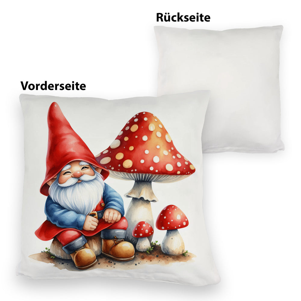 Gartenzwerg mit Fliegenpilz Kissen