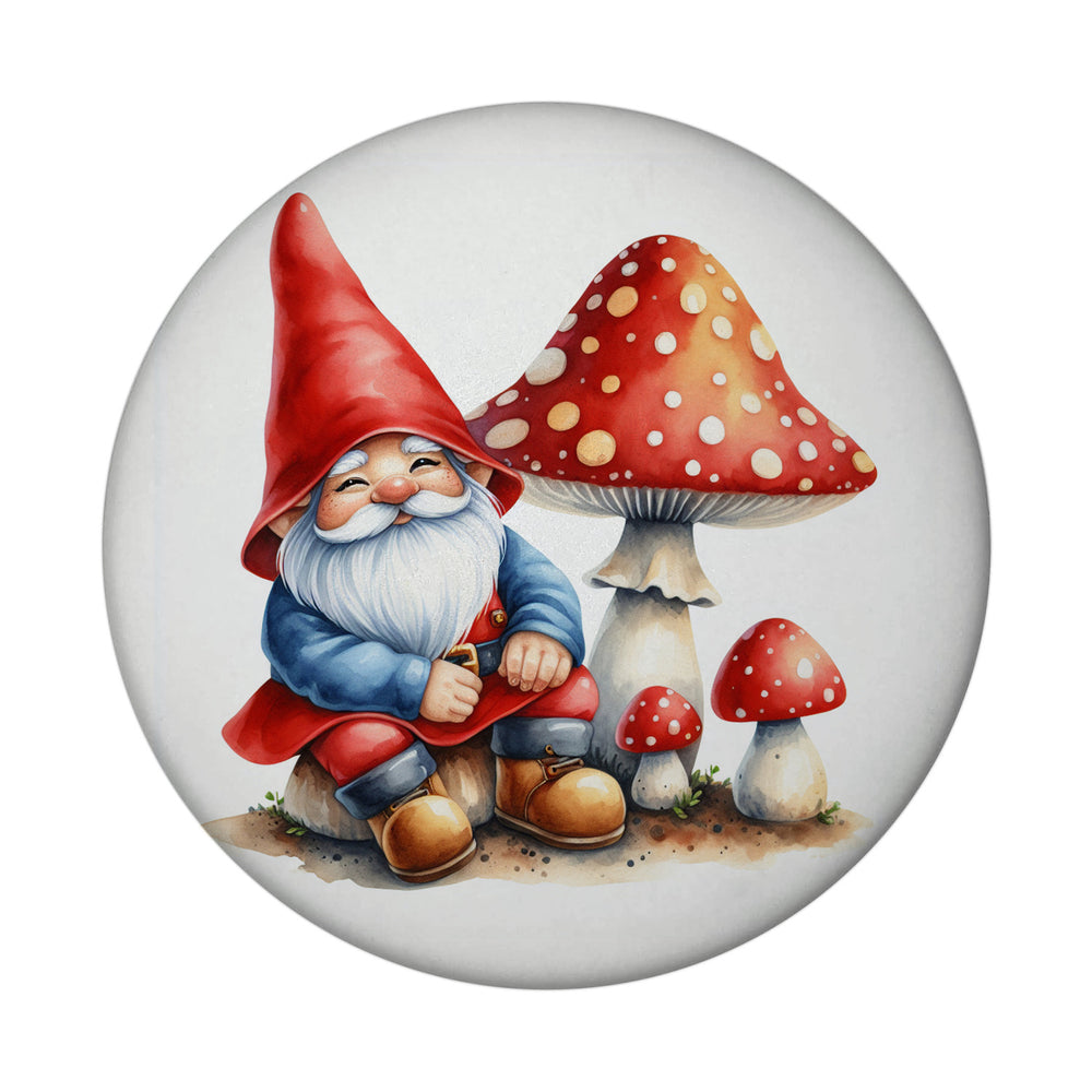 Gartenzwerg mit Fliegenpilz Magnet rund