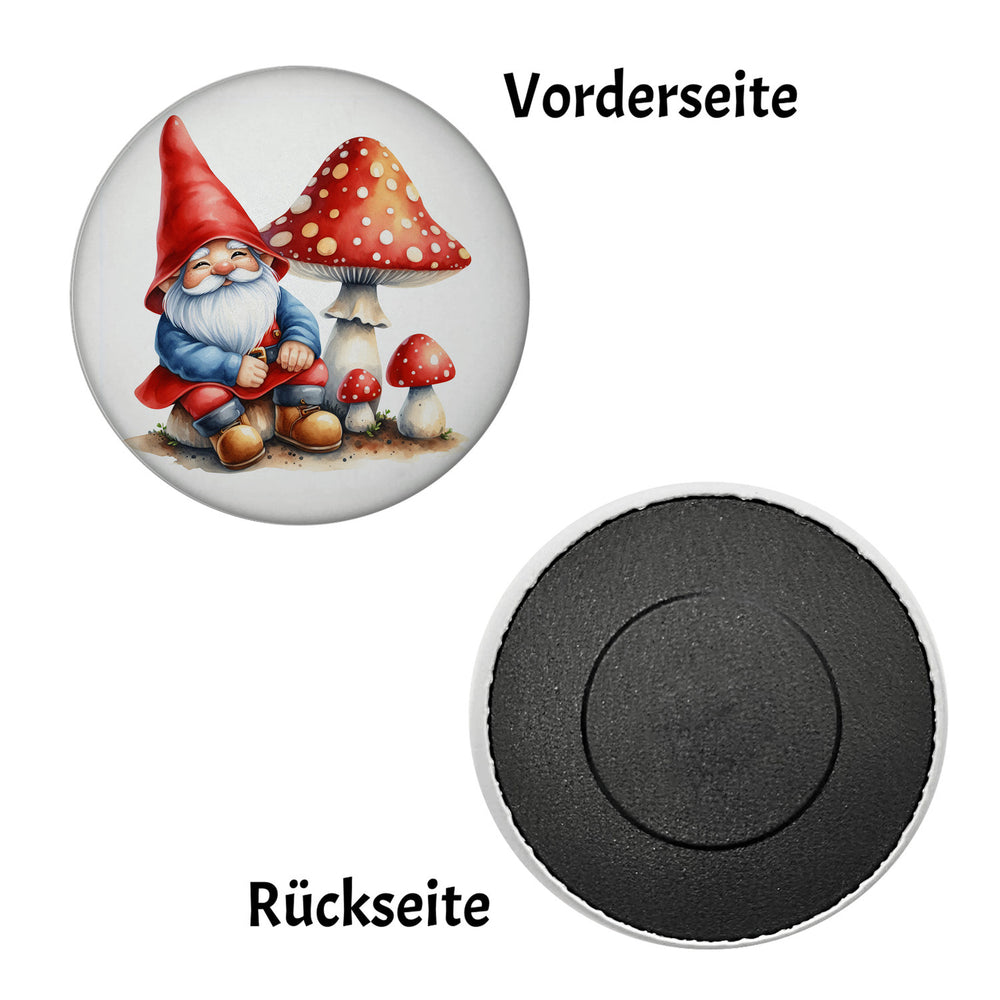 - 1x Gartenzwerg mit Fliegenpilz Magnet rund in der gewählten Ausführung