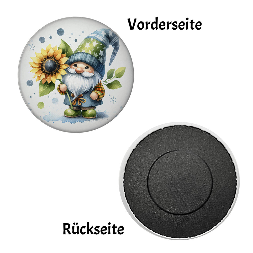 - 1x Gartenzwerg mit Sonnenblume Magnet rund in der gewählten Ausführung