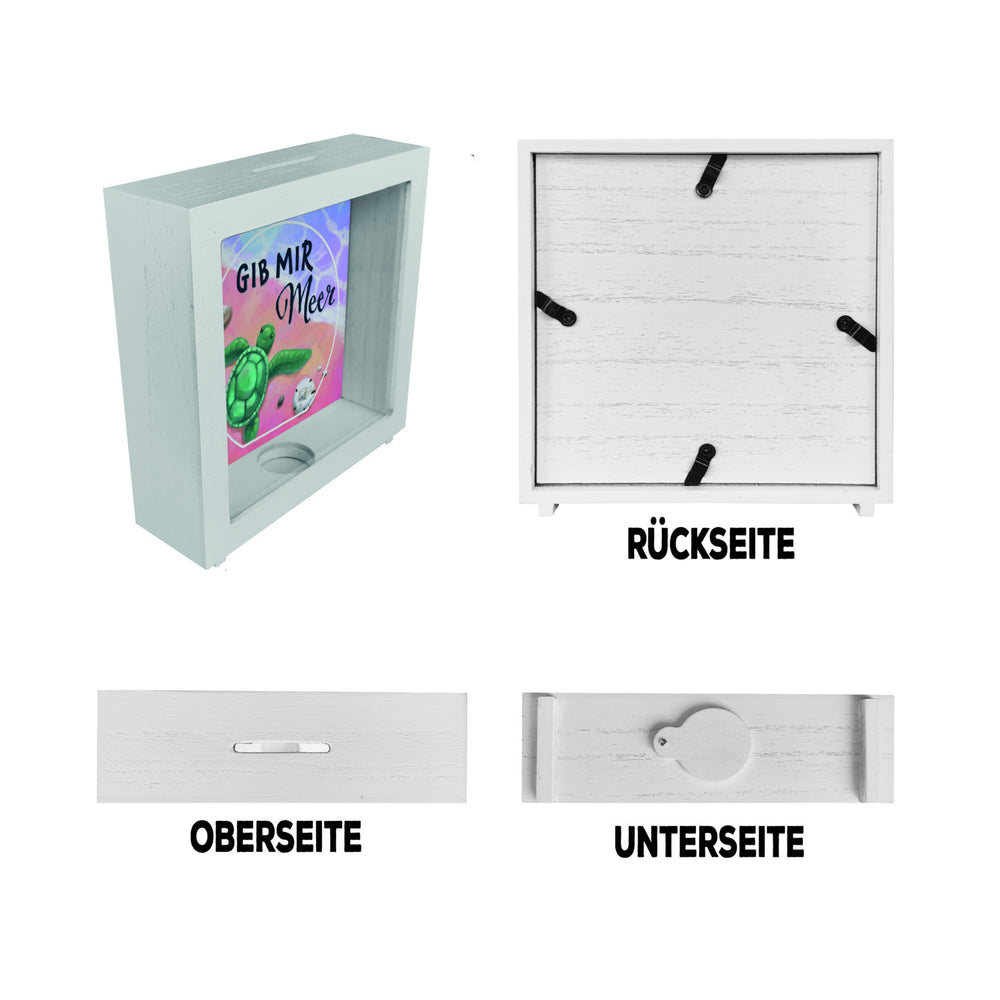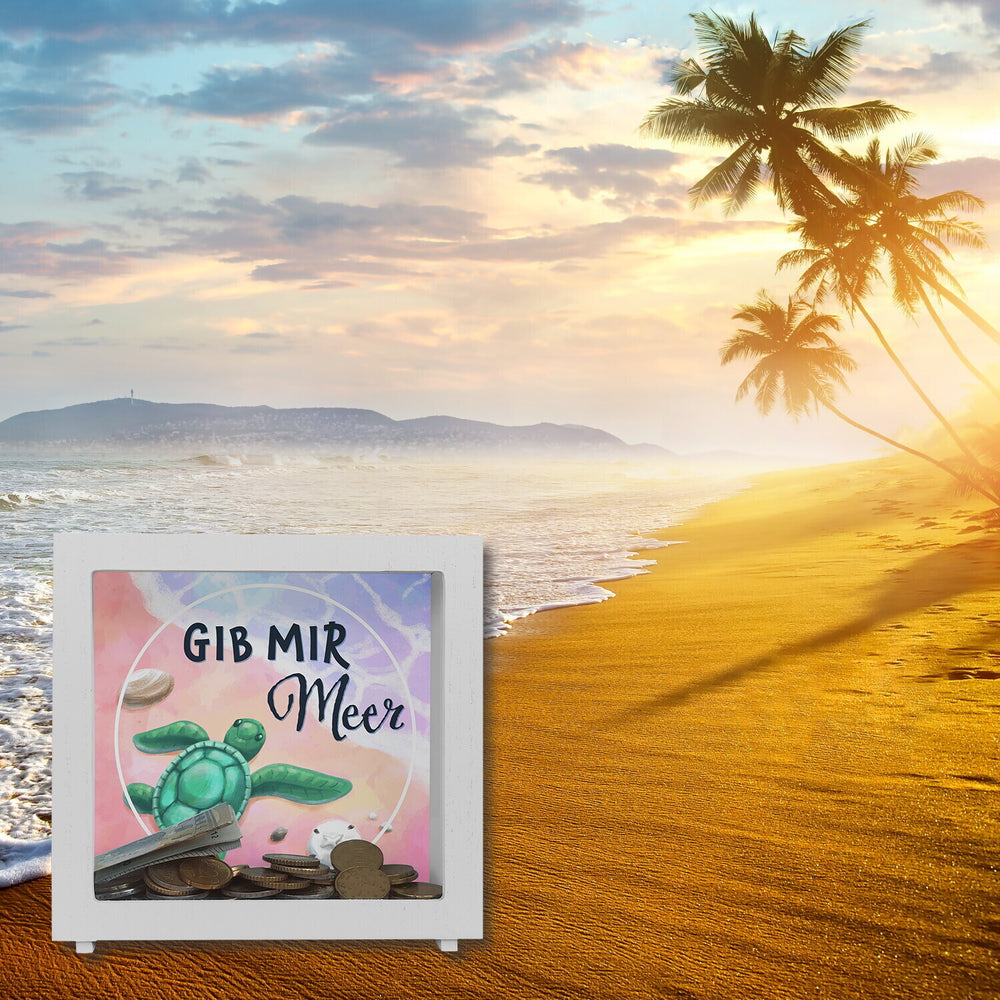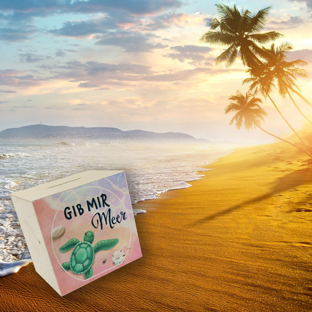 - 1x Gib mir Meer Spardose mit Meer- und Schildkröten-Motiv in der gewählten Ausführung
