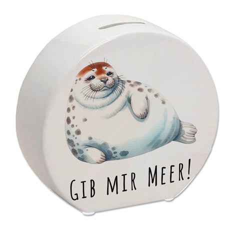 Dicke Robbe Spardose mit Spruch Gib mir Meer