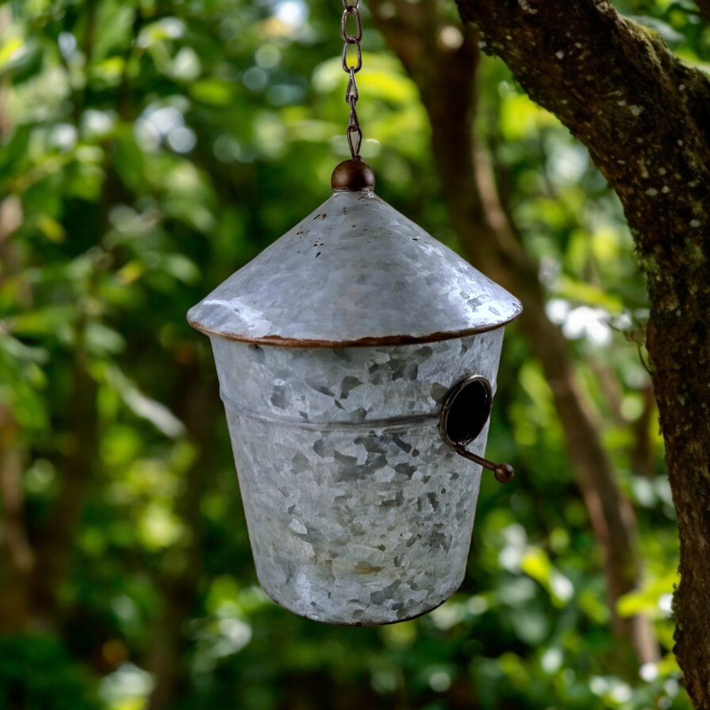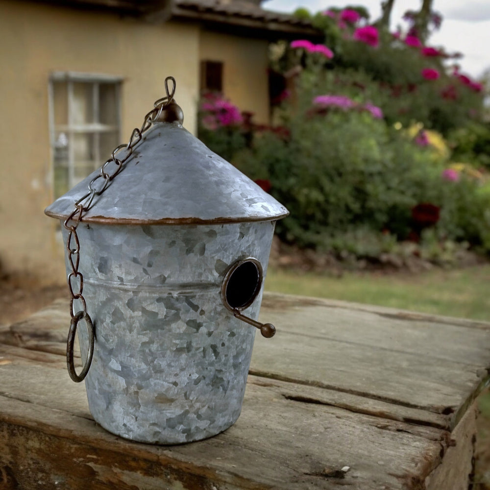 • Unser Vogelhaus aus Zink sieht nicht nur stylisch aus, es ist auch funktional! Design wie ein Eimer mit Spitzdach, Aufhängkette und kuscheligem Eingangsloch mit praktischer Sitzstange. Und das Beste: Die kleine Tür auf der Rückseite ermöglicht ein einfaches Reinigen!