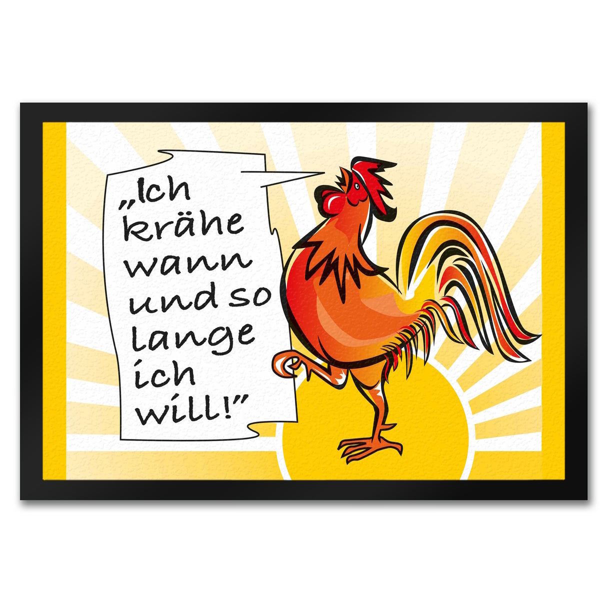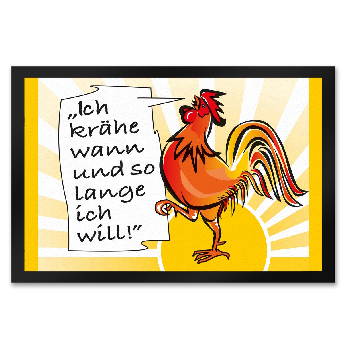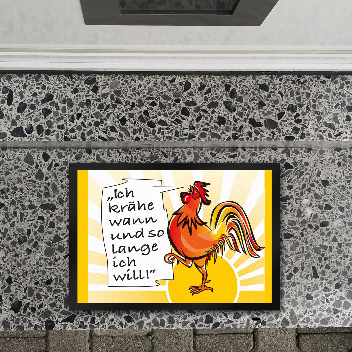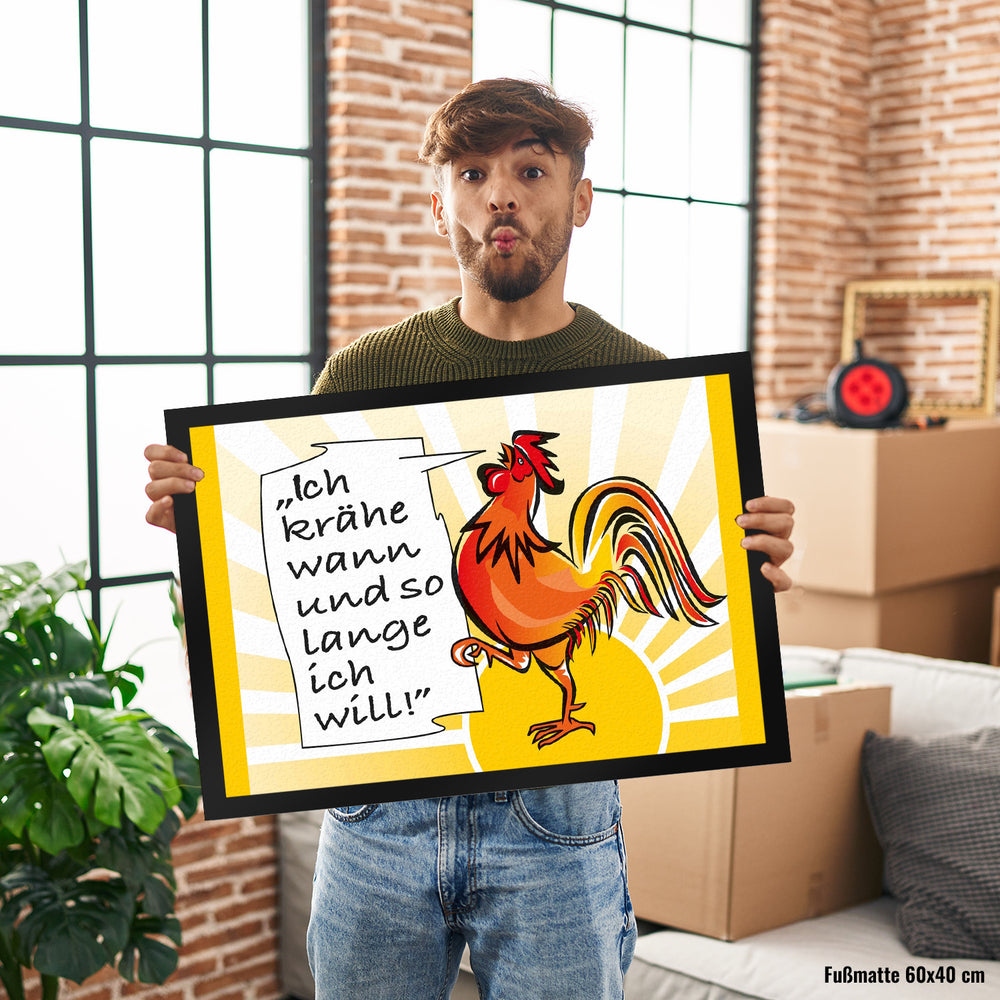 Hahn Fußmatte mit Spruch: Ich krähe wann und solange ich will!