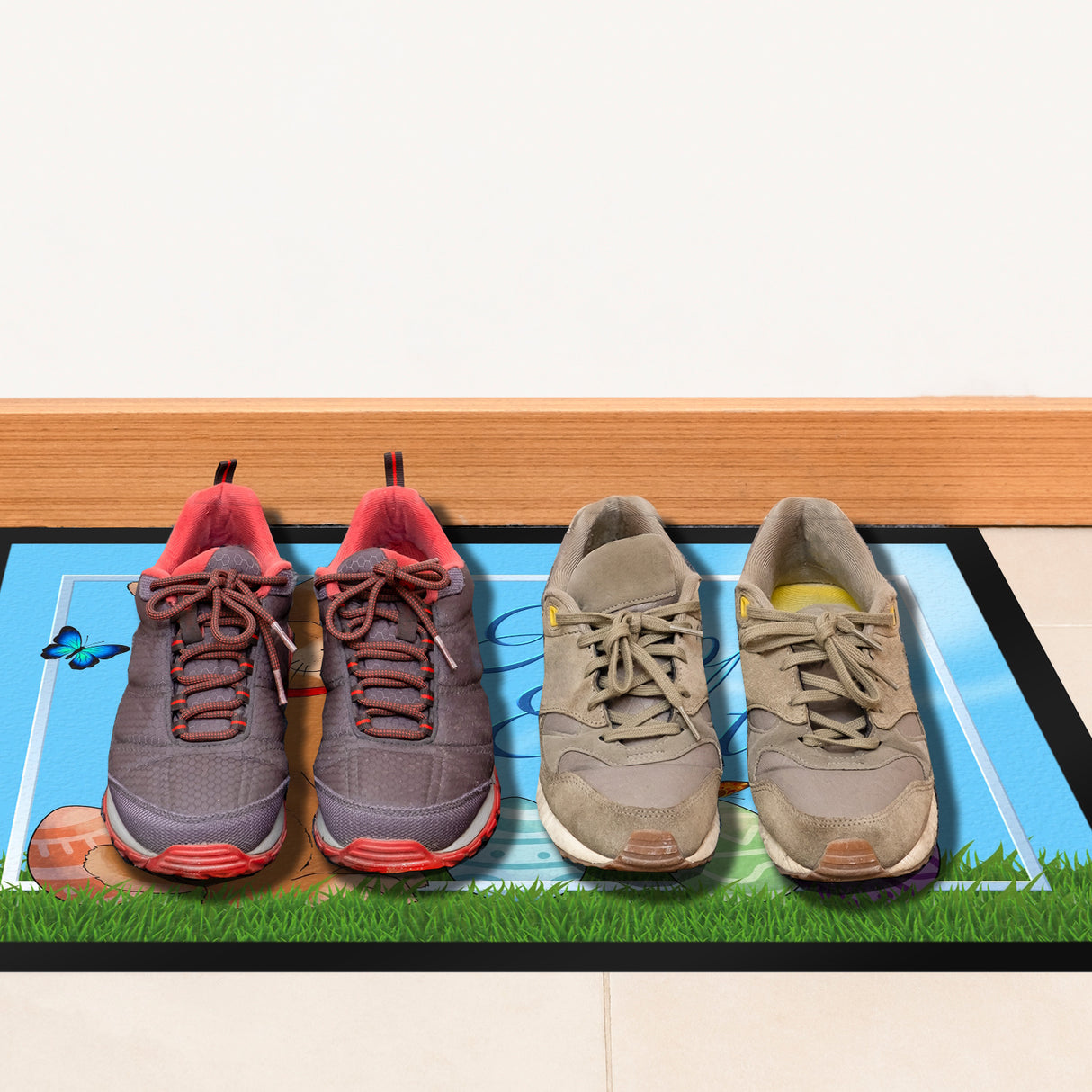 - Du magst eine klassische Osterdekoration für deinen Hauseingang? Dann ist diese Fußmatte mit hübschem Osterhasen und bunten Ostereiern ganz sicher nach deinem Geschmack.