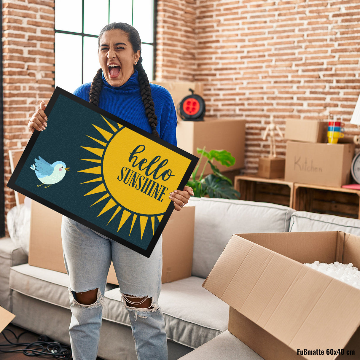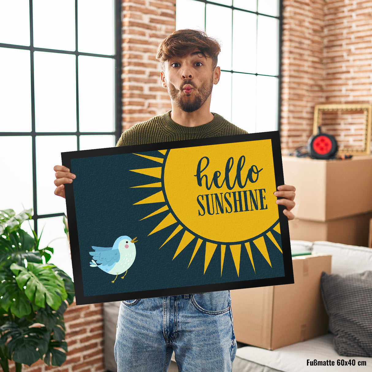 - 1x Hello Sunshine Vogel und Sonne Fußmatte in der gewählten Größe
